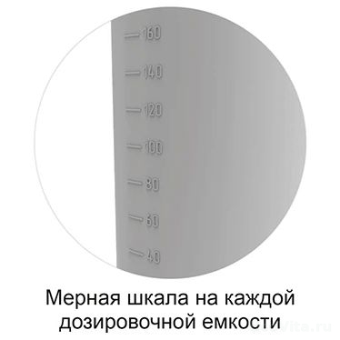 - На поверхности корпуса есть шкала для визуального контроля уровня жидкости;
