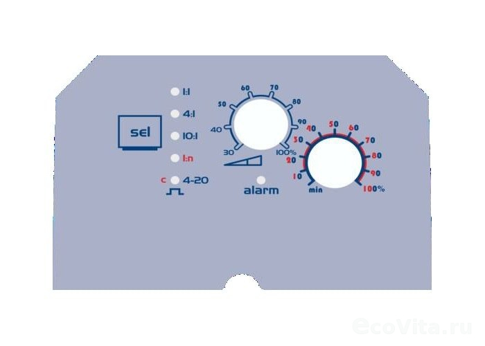 Аналоговый дозирующий насос Seko Maxima Plus MGR 800 с постоянной и пропорциональной производительностью. Постоянная производительность регулируется вручную, а пропорциональная согласно внешнему аналоговому (4÷20 мА) или цифровому сигналу (например, от расходомера).