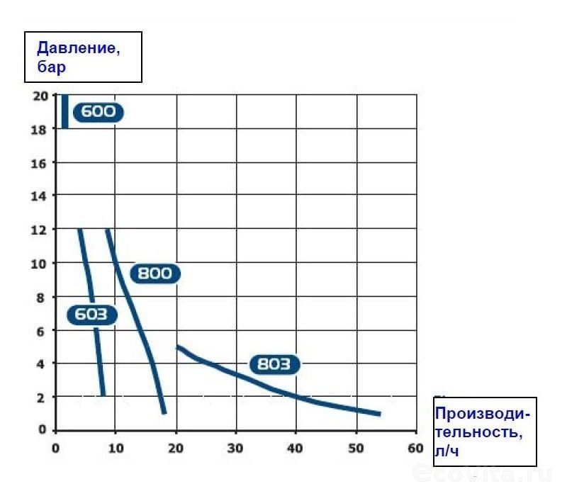 | Противодавление, бар | Расход, л/ч | Макс частота впрысков в мин. | Объем впрыска, мл |