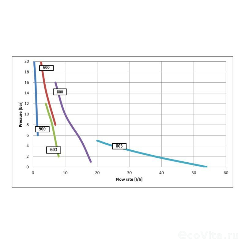 | Противодавление, бар | Расход, л/ч | Макс частота впрысков в мин. |