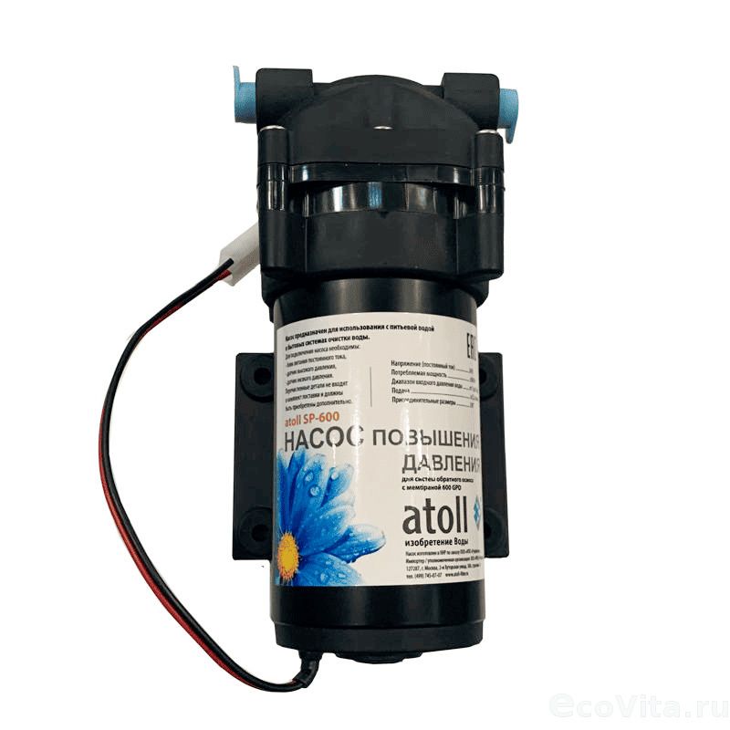 Основная задача насоса Atoll для фильтров 600 GPD (SP-600) заключается в обеспечении стабильного повышения давления в трубопроводе с низкими показателями или колебаниями давления до 3 бар.