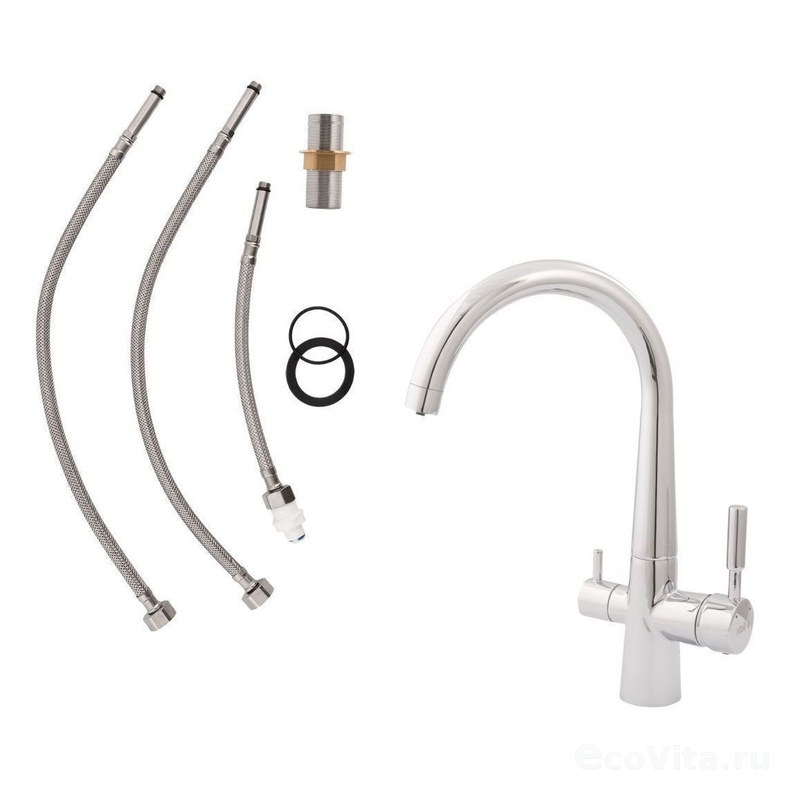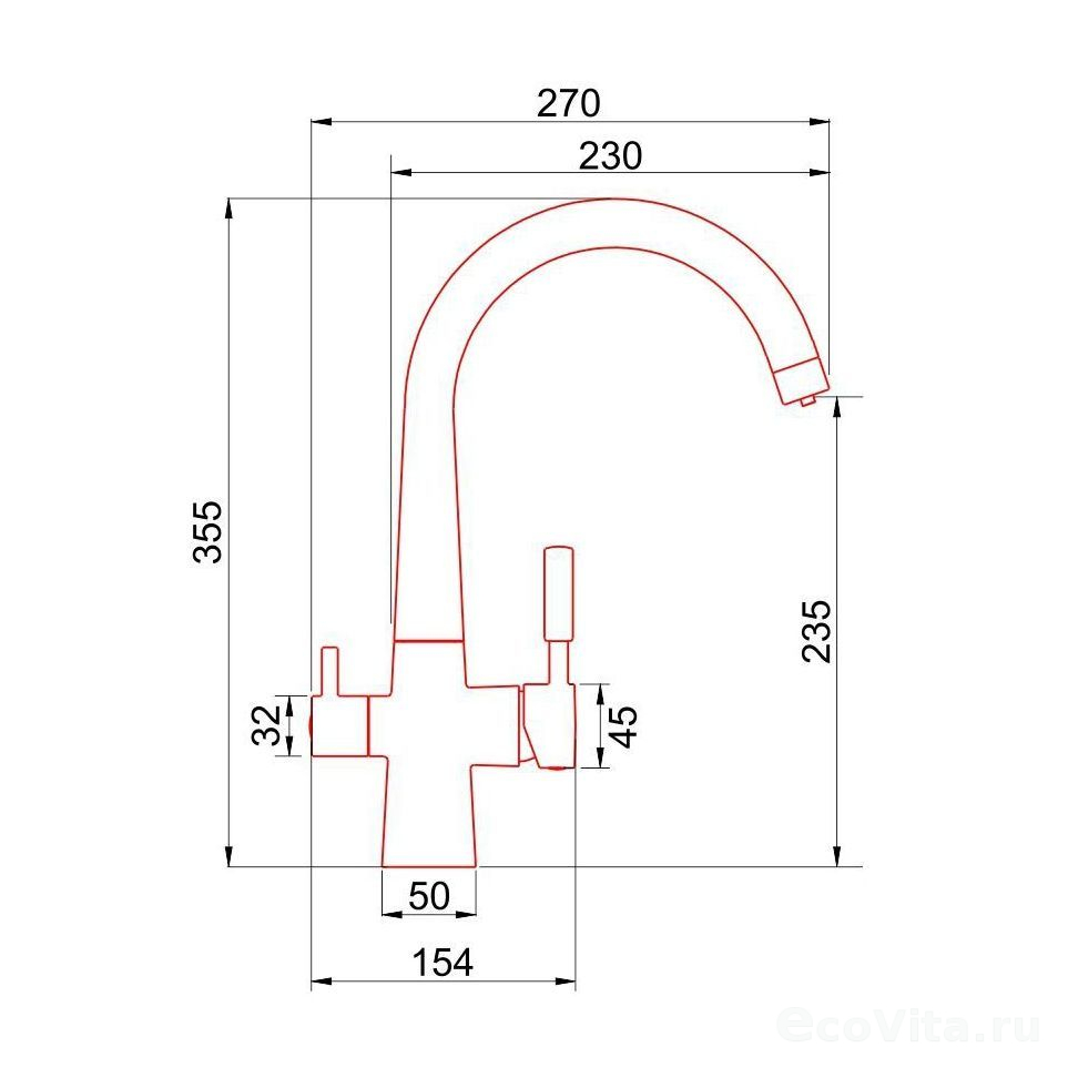 • Длина резьбы крепления составляет 80 мм, что делает возможным установку изделия на кухонных поверхностях толщиной до 55 мм включительно.