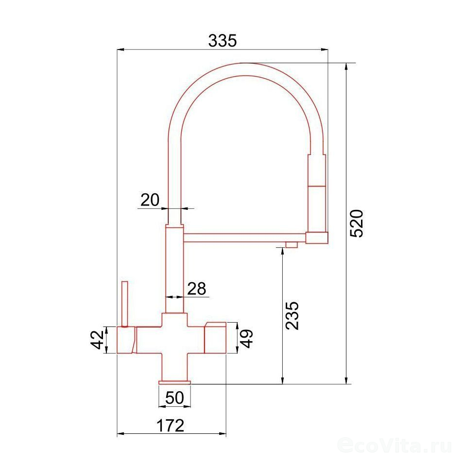 - Длина резьбового крепления 80 мм позволяет установку на столешницы толщиной до 55 мм.