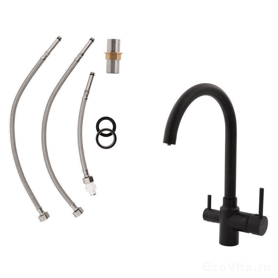 Комбинированный кран Atoll 2209-BB, выполненный в черном цвете, является функциональной моделью, идеально подходящей для практичного использования на современной кухне. Устройство подсоединяется одновременно к бытовому фильтру и центральной системе водоснабжения, предоставляя возможность выбора между очищенной питьевой водой и обычной водой из-под крана.