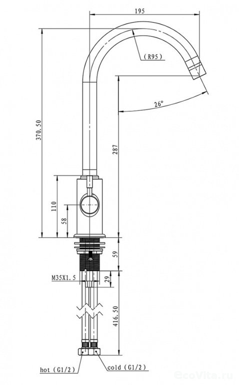 - Внутрення трубка и корпус смесителя изготовлены из нержавеющей стали