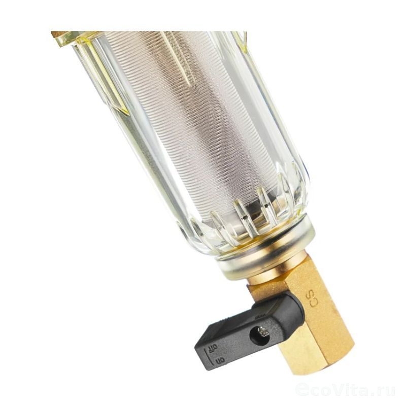 - Прозрачная высокопрочная колба позволяет следить за накоплением загрязнений в фильтре;
