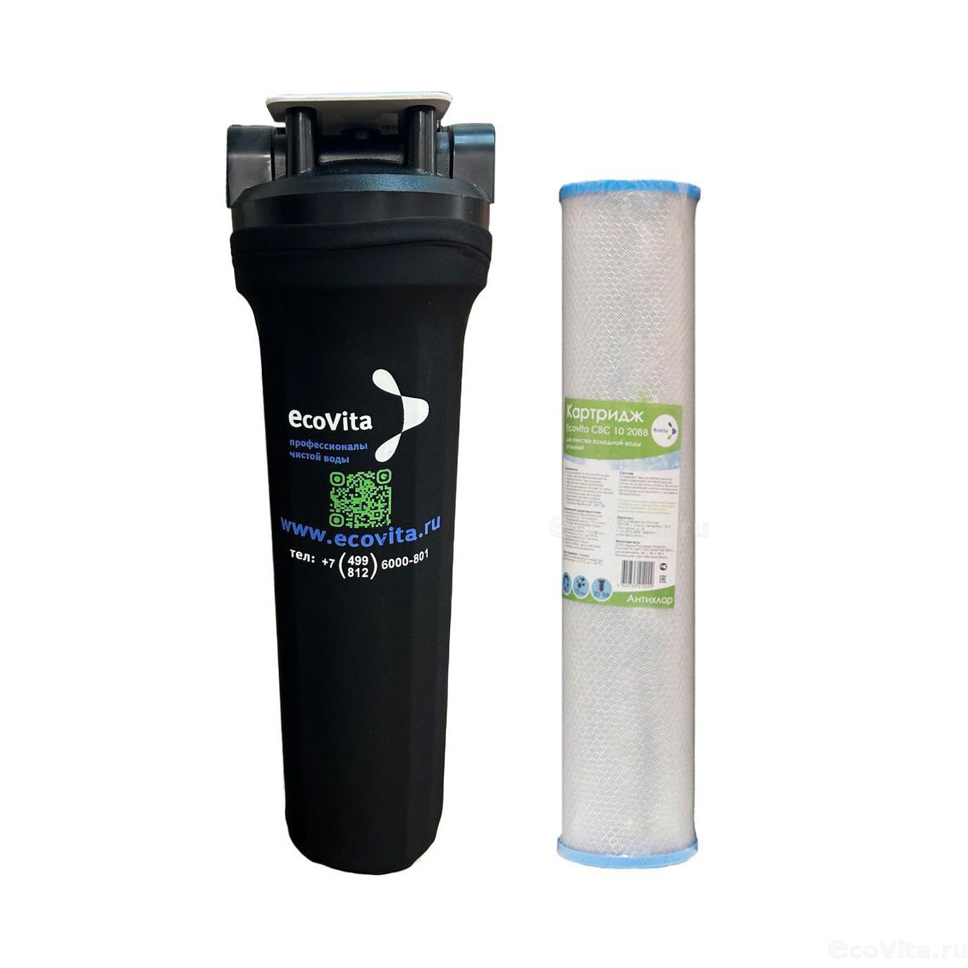 - Угольный картридж Ecovita CBC 10 20BB – очищает холодную воды от хлора, органики, хлорорганики, пестицидов. Дополнительно удаляет взвешенные нерастворимые частицы.
