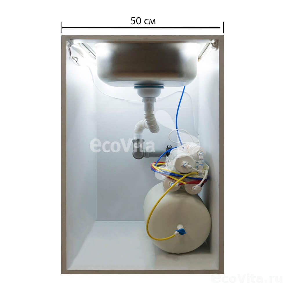 Питьевой кран не входит в состав фильтра. Комплектация разработана специально для покупателей, которые хотят установить на кухне комбинированный смеситель или цветной питьевой кран.