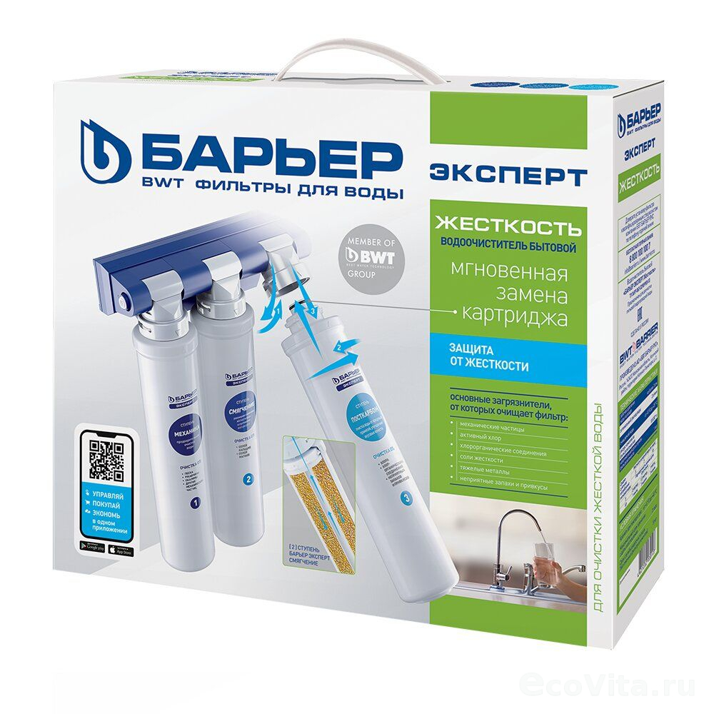Фильтр Барьер ЭКСПЕРТ Жесткость относится к новому поколению систем очистки питьевой воды.Обеспечивает высокую эффективность фильтрации на протяжении всего ресурса сменных картриджей. Надежная защита от крупных механических частиц, активного хлора, ионов тяжелых и токсичных металлов. Эффективно снижает содержание солей жесткости в воде без эффекта гиперумягчения. Инновационная конструкция фильтра позволяет заменять картридж одним движением руки.