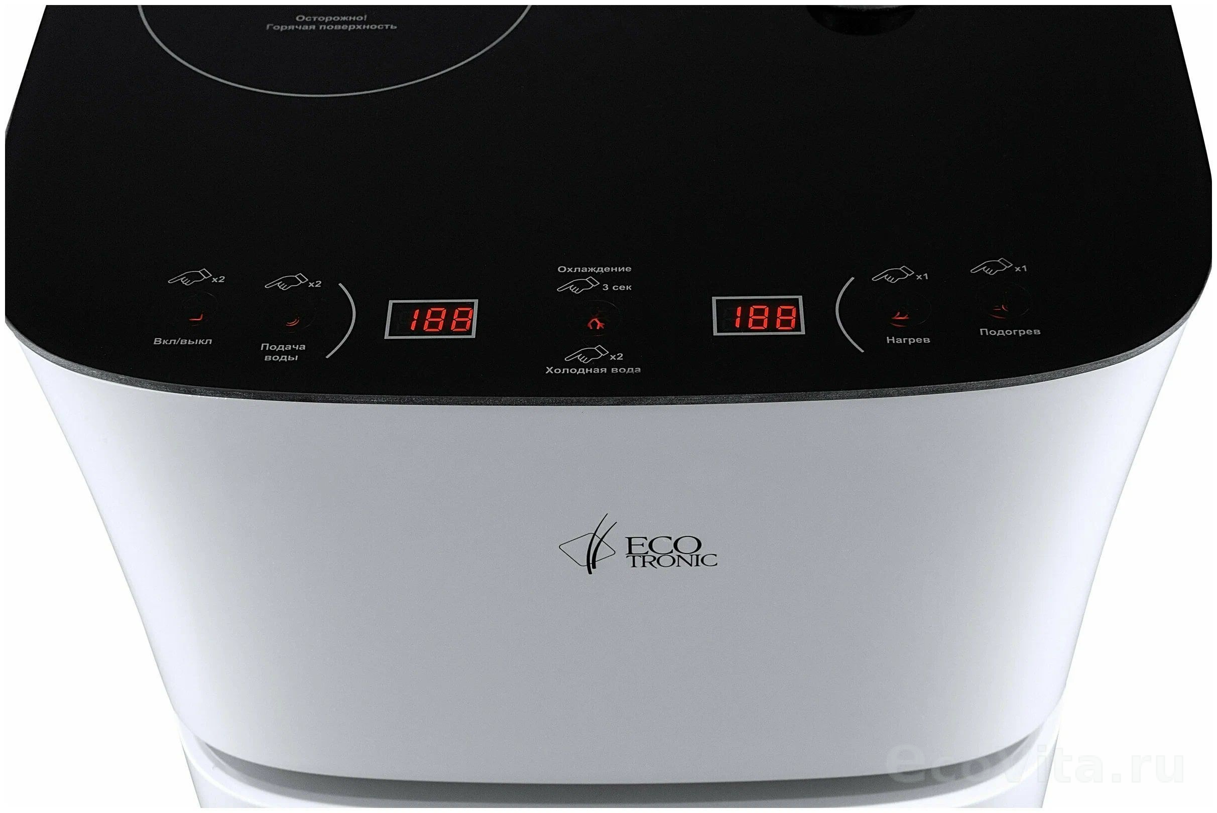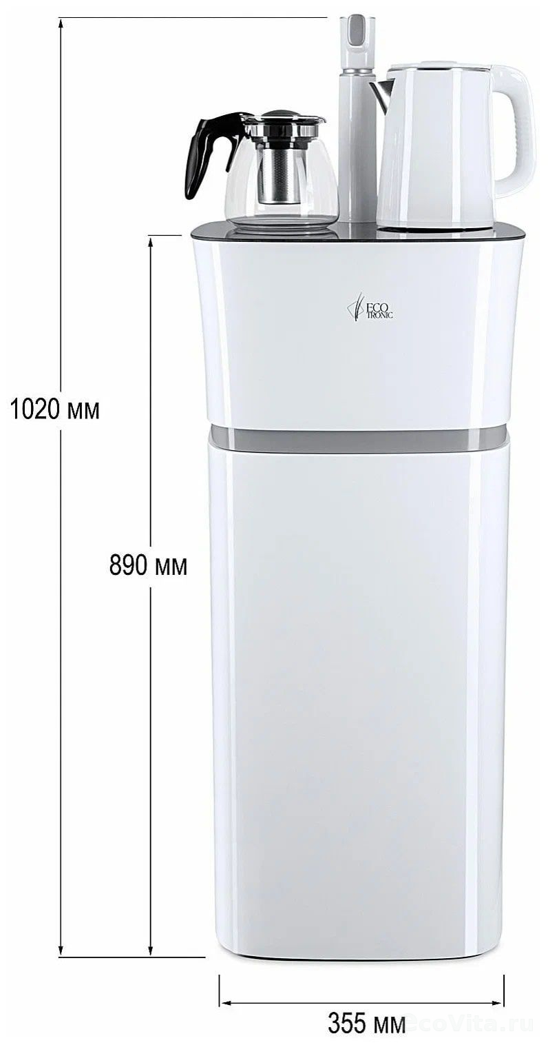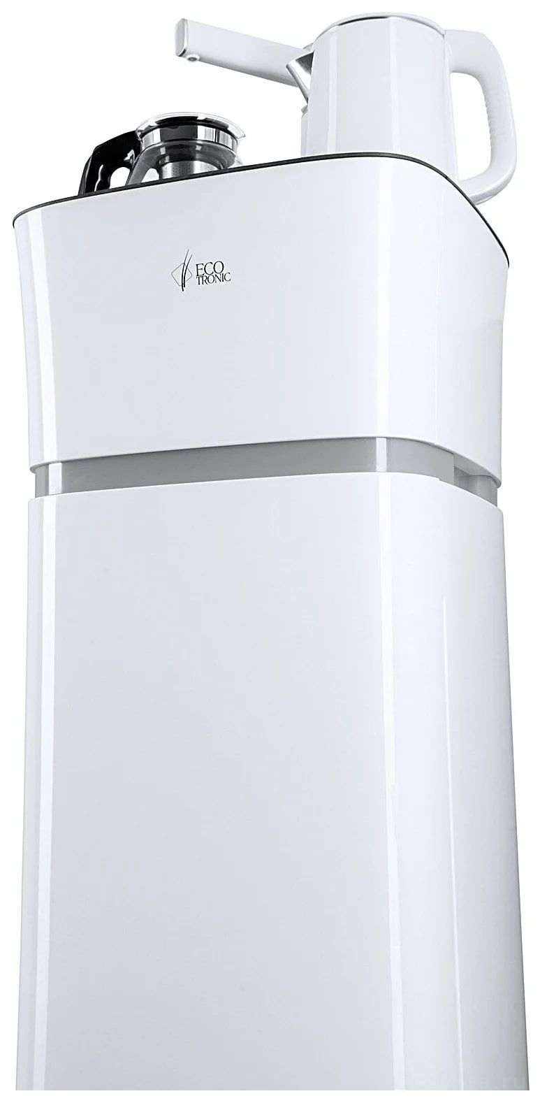 Тиабар Ecotronic TB11-LE white – это напольный кулер с чайным столиком. Нижняя загрузка бутыли, электронное охлаждение. Нагрев воды в чайнике до 100°С. Два чайника – для кипячения (изотермический) и заварочный.