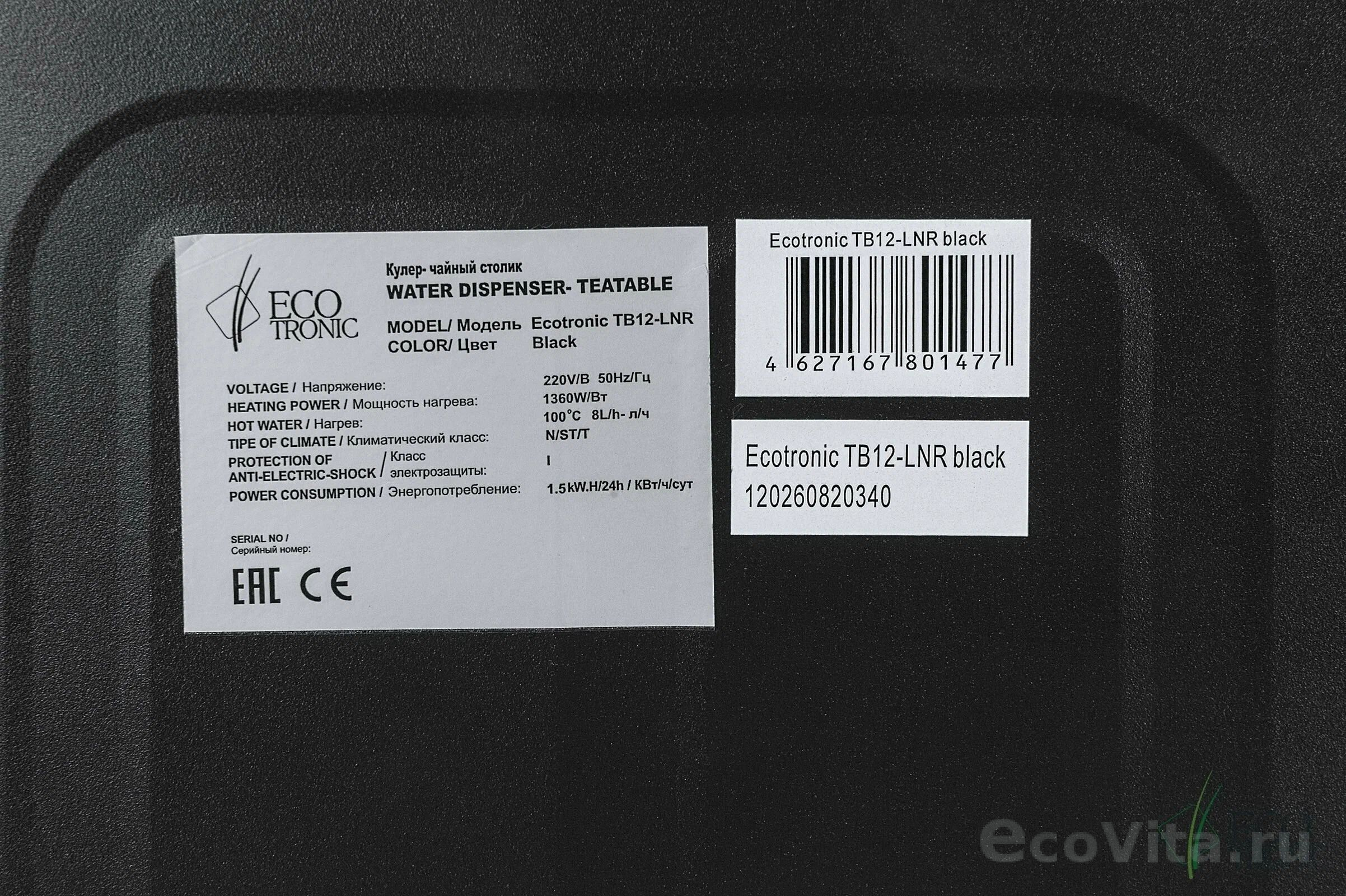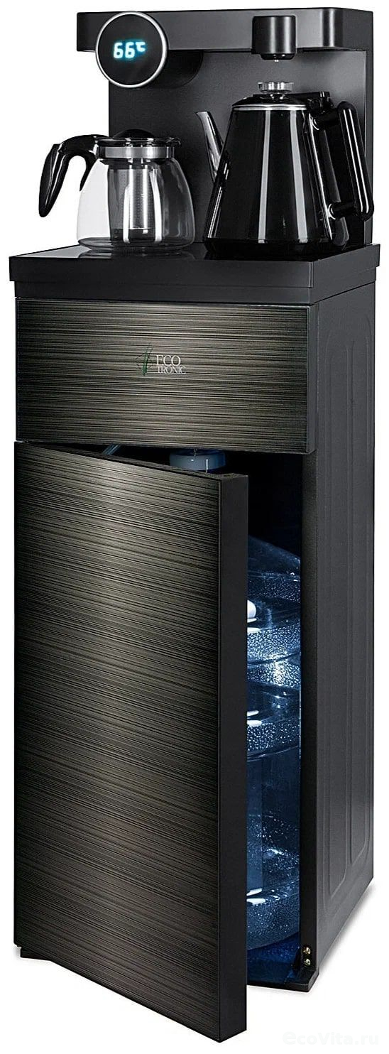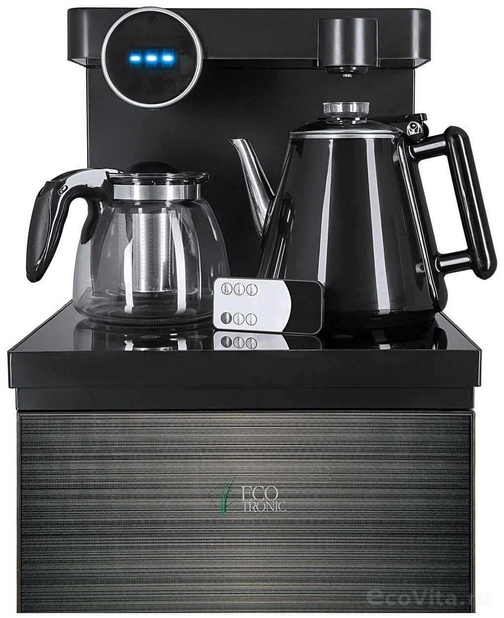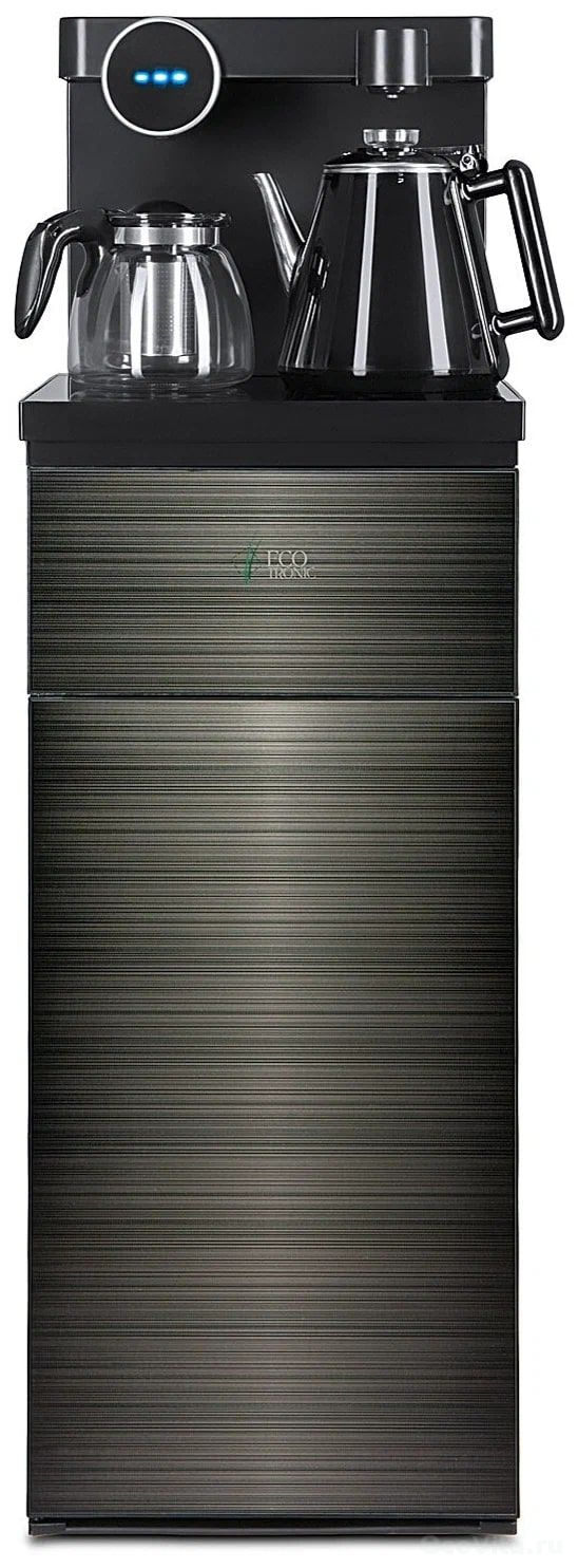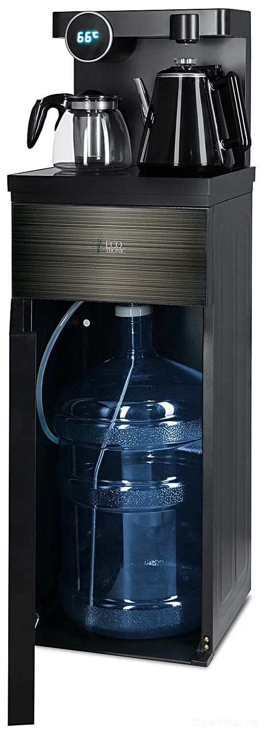 Тиабар Ecotronic TB12-LNR black – это напольный кулер с чайным столиком. Пульт дистанционного управления. Нижняя загрузка бутыли. Два чайника – для кипячения и заварочный. Без охлаждения, только нагрев. Нагрев воды в чайнике до 100°С. Шкафчик для хранения.