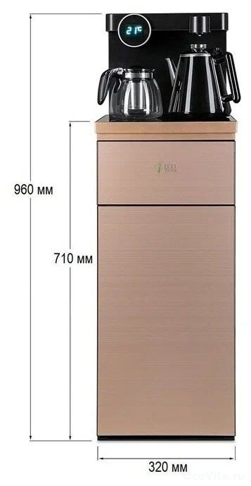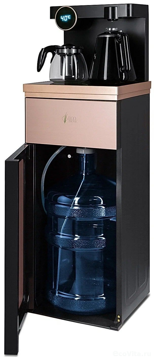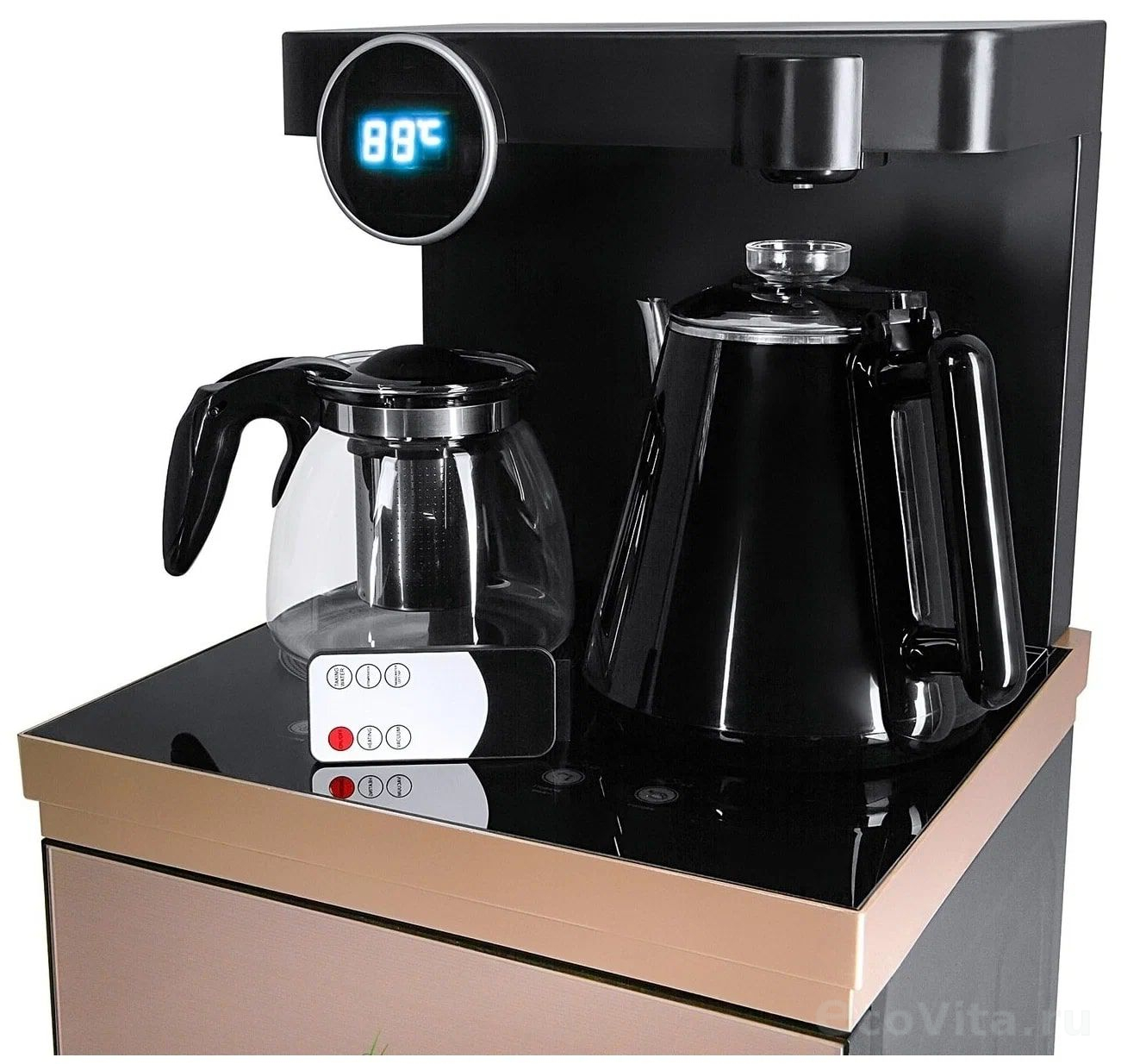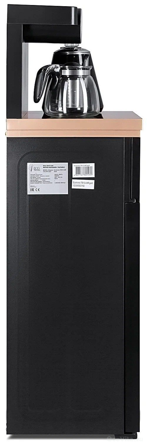 Тиабар Ecotronic TB12-LNR gold – это напольный кулер с чайным столиком. Пульт дистанционного управления. Нижняя загрузка бутыли. Два чайника – для кипячения и заварочный. Без охлаждения, только нагрев. Нагрев воды в чайнике до 100°С. Шкафчик для хранения.