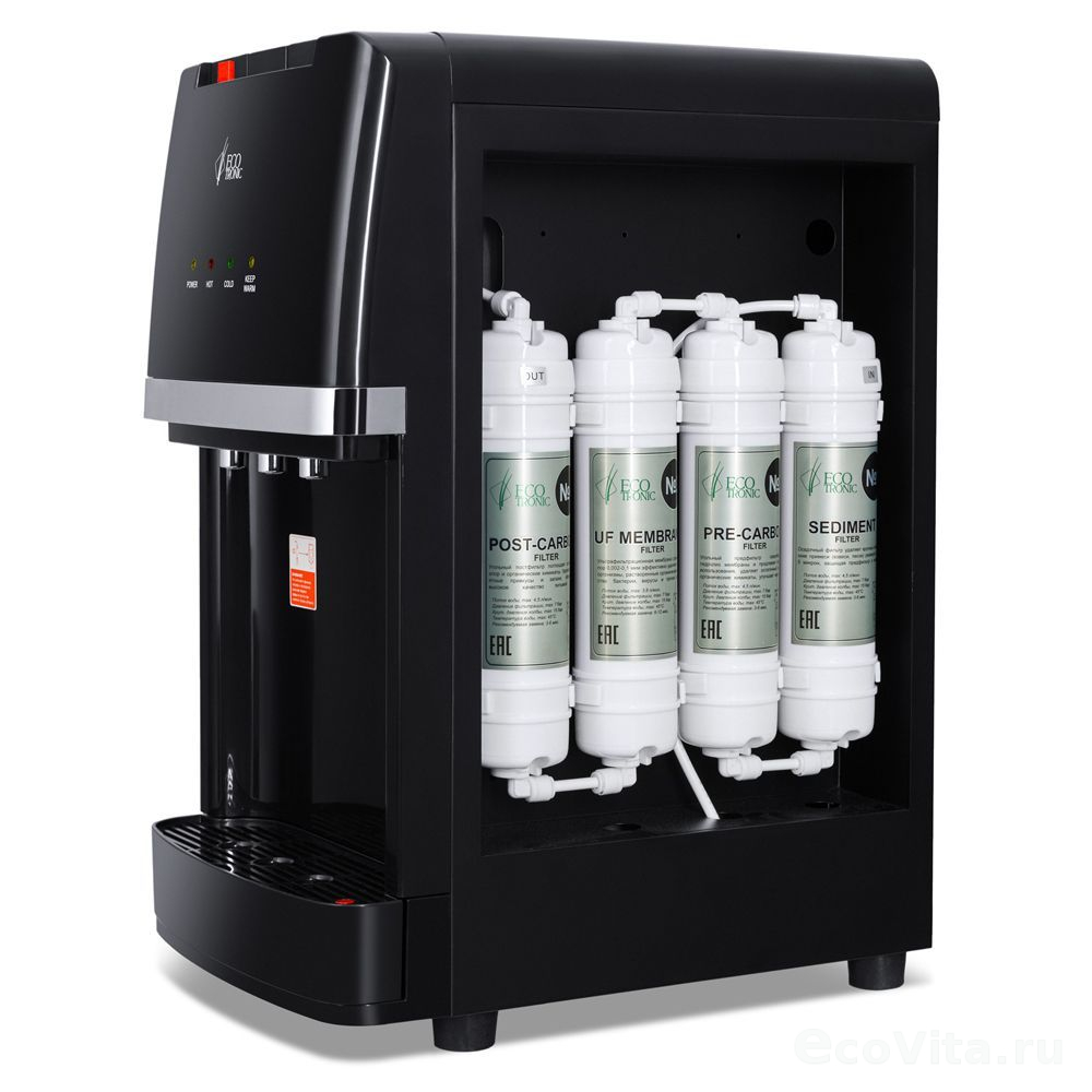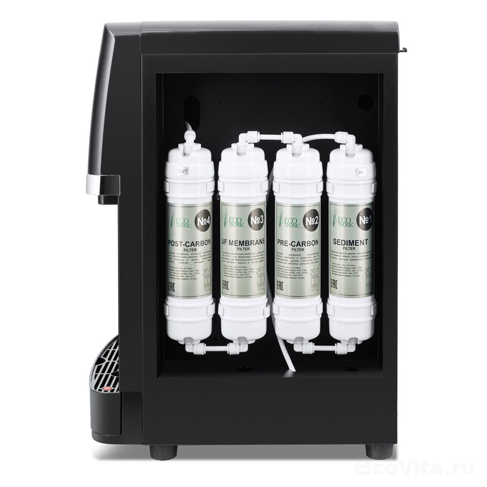 Настольный пурифайер Ecotronic A7-U4TE black с ультрафильтрационной системой очистки воды и электронным охлаждением. Пурифайер подключается к водопроводной системе и очищает воду от воду от хлора, железа, марганца, удаляет неприятный запах и мутность. Подходит для использования в офисах, домах и на дачах. Система фильтрации проста в обслуживании при своевременной замене картриджей.