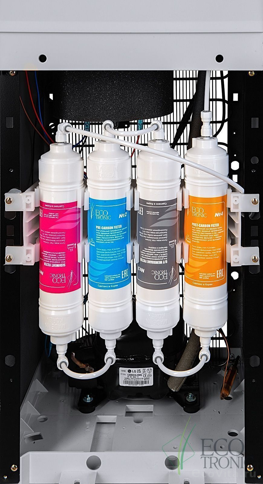 Пурифайер Ecotronic A88-U4L Black+White напольного типа с ультрафильтрационной системой очистки воды. Подключается к водопроводной системе, очищая воду от вредных примесей и бактерий.