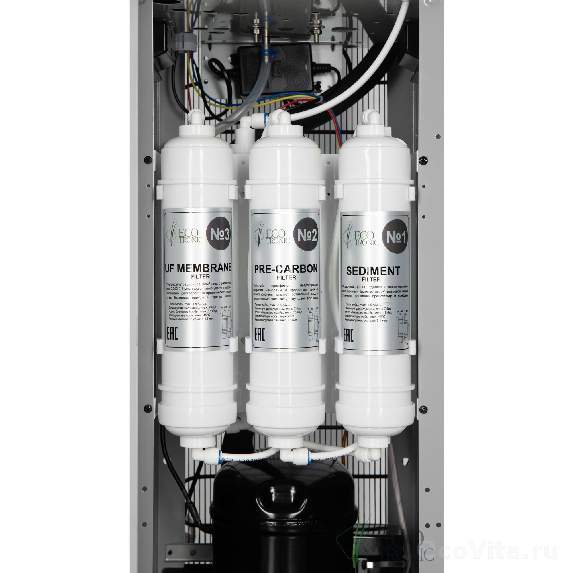 Напольный пурифайер Ecotronic P50-U4L silver с системой ультратонкой фильтрации воды благодаря наличию UF мембраны.