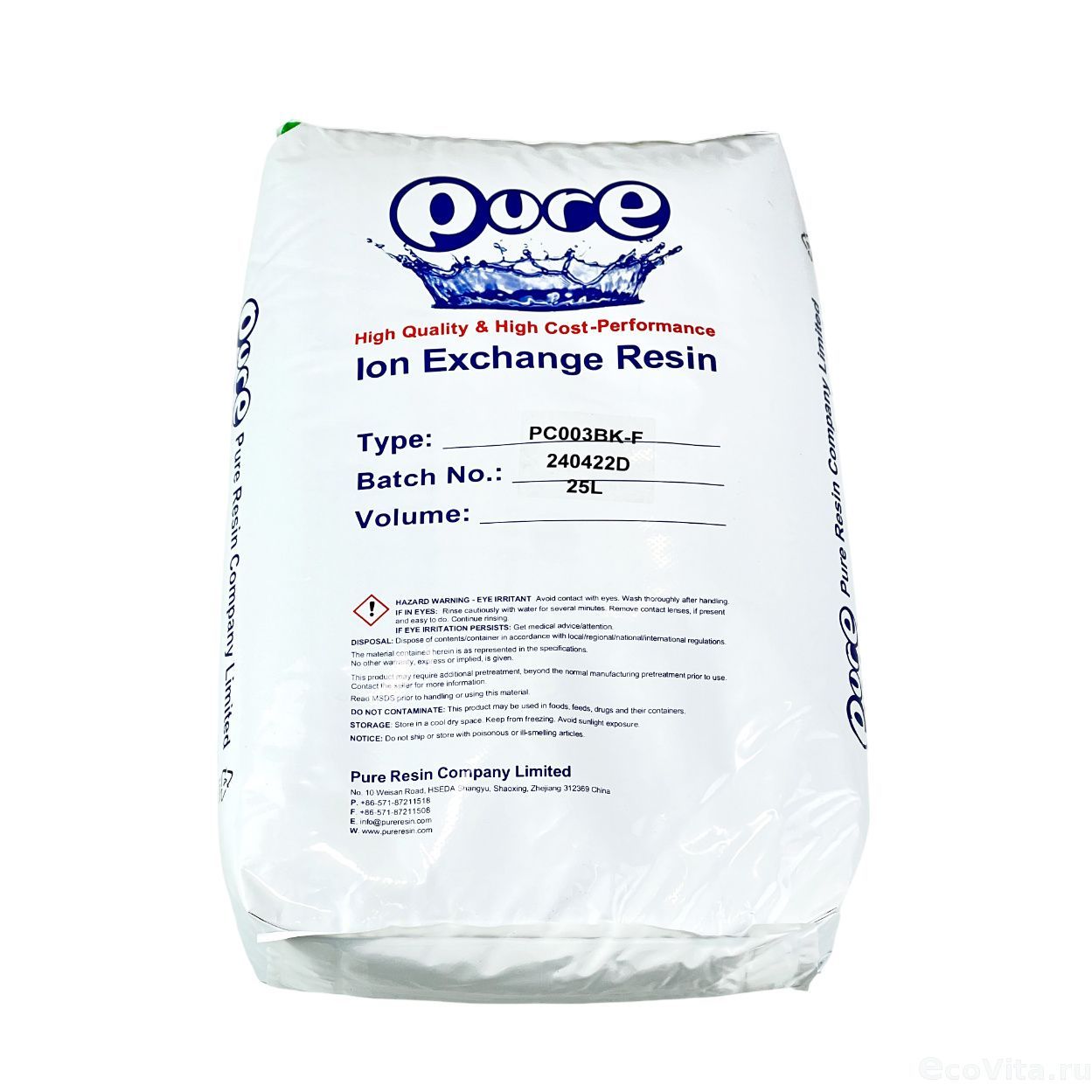 Катионит Puresin (Пюрезин) PC003BK Fine mesh – мелкофракционный гелевый материал черного цвета, изготовленный на основе полистиролсульфоната, предназначенный для использования в системах умягчения воды.