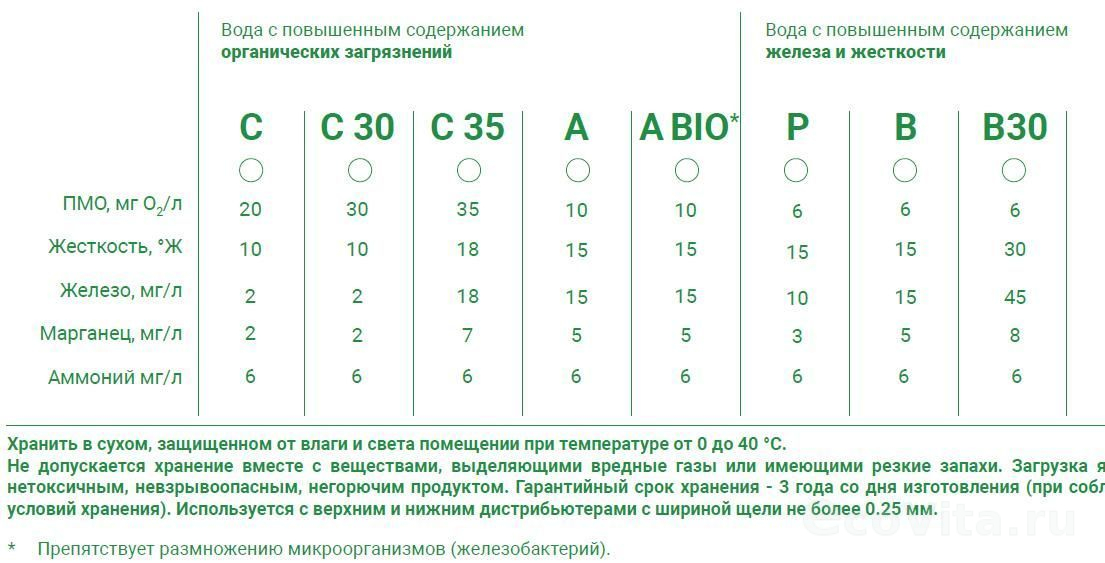 Фильтрующий материал Экотар С (Ecotar C) – смесь смол для очистки воды от природных органических соединений, органического железа и марганца. Рекомендуется применять для очистки воды из неглубоких скважин, колодцев, открытых поверхностных источников. Для регенерации загрузки используется раствор поваренной соли.