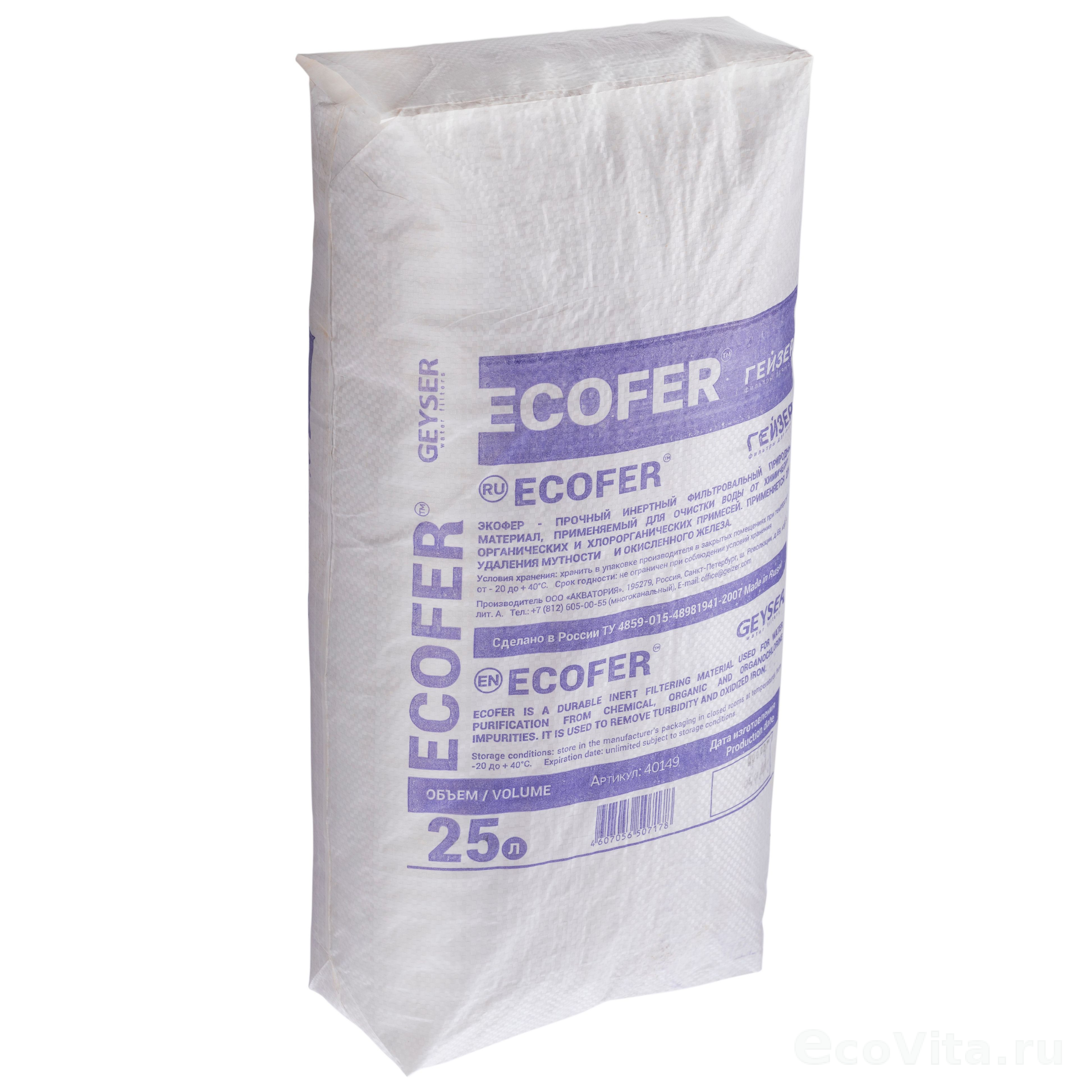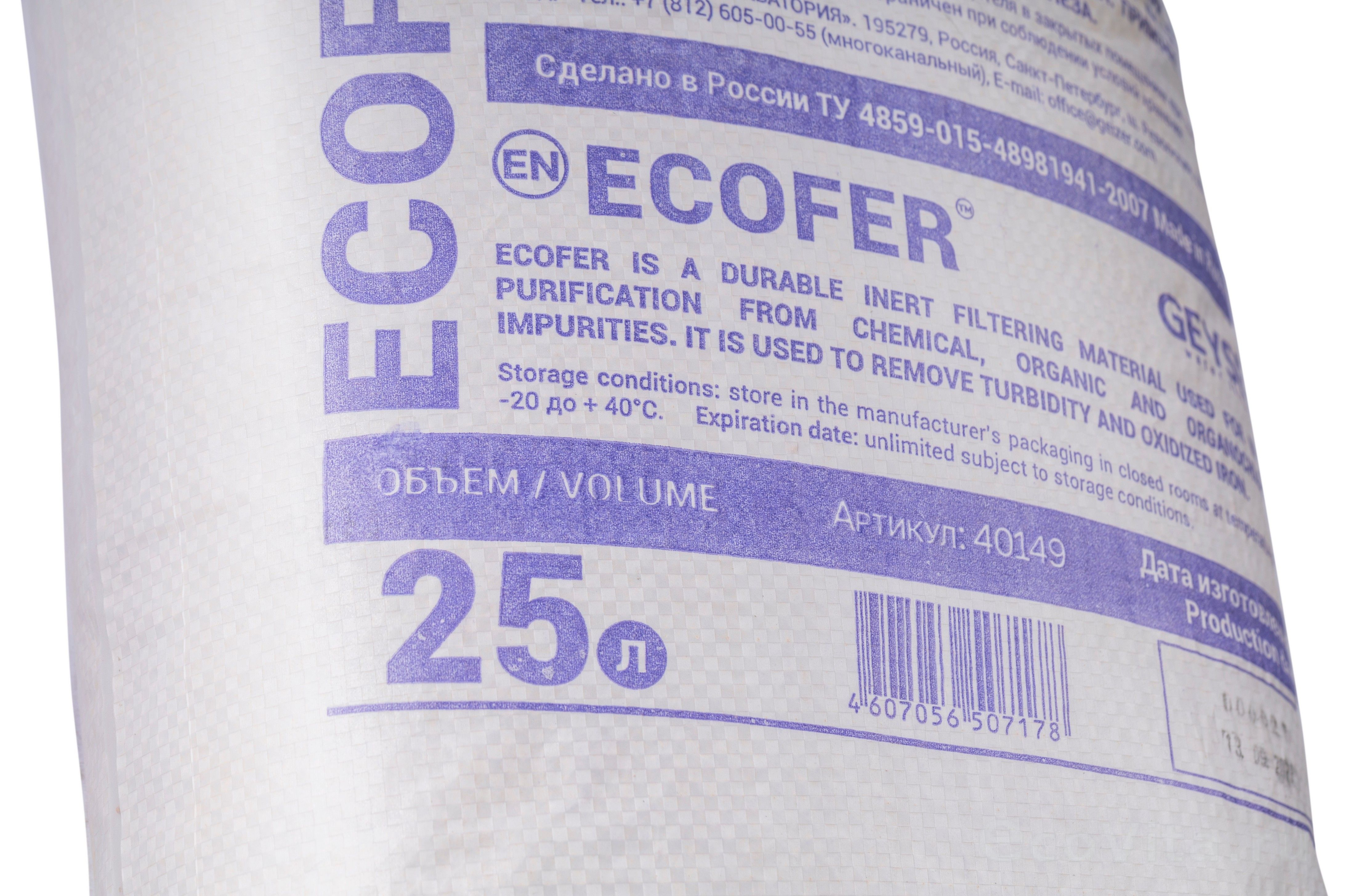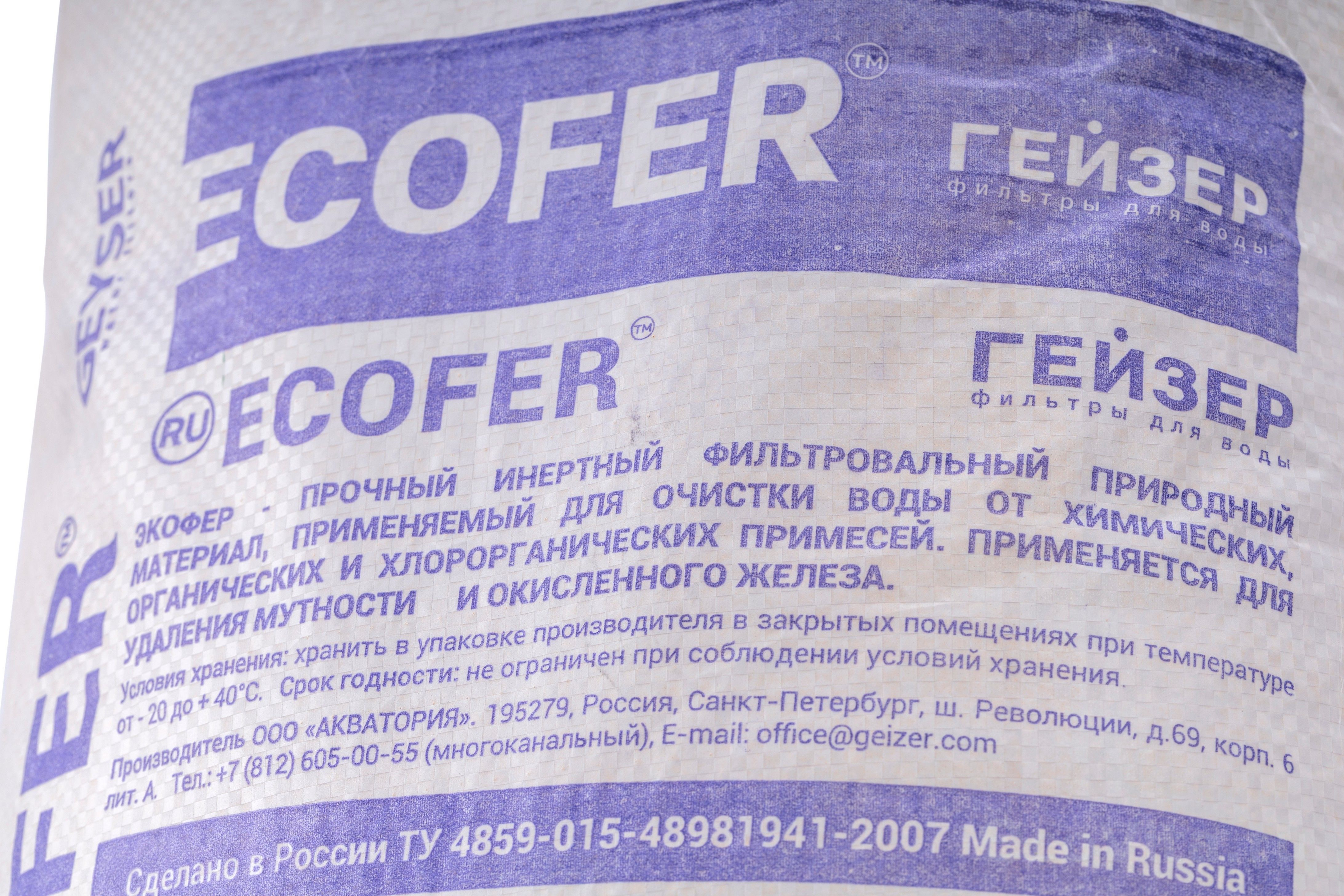Экофер используется для комплексной очистки воды до нормативов СаНПиН. Водоподготовки для бассейнов, работы с окислителями, и наличием сероводорода в исходной воде. При прохождении воды через EcoFER железо Fe²+ и марганец Mn2+, растворенные в воде, образуют осадок (гидроксиды железа и марганца), который задерживается в толще загрузки и потом легко удаляется из нее при промывке системы (регенерации).