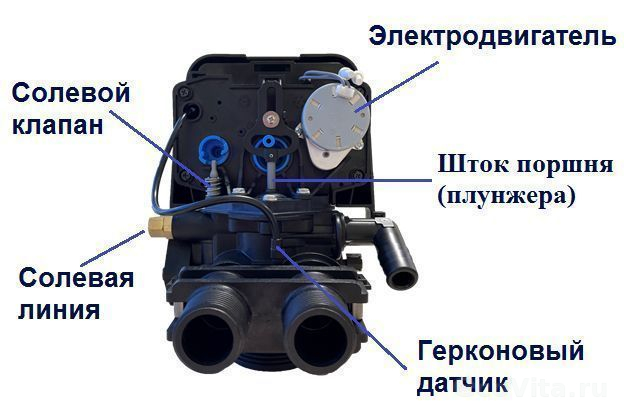 Аналог блоков управления Fleck 5800. Принцип действия клапана построен на вертикальном возвратно-поступательном движении плунжера внутри спейсера (spaser), в результате чего и происходят изменения водяных потоков. Разработан специально для России.