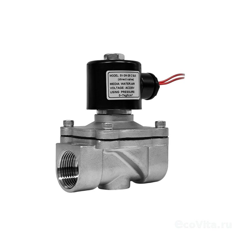 Cоленоидный клапан SV-2W-25 N/C 1" SUS прямого действия (нормально закрытый) предназначен для управления движением потоков воды в водопроводах, системах водоподготовки и водоочистки.
