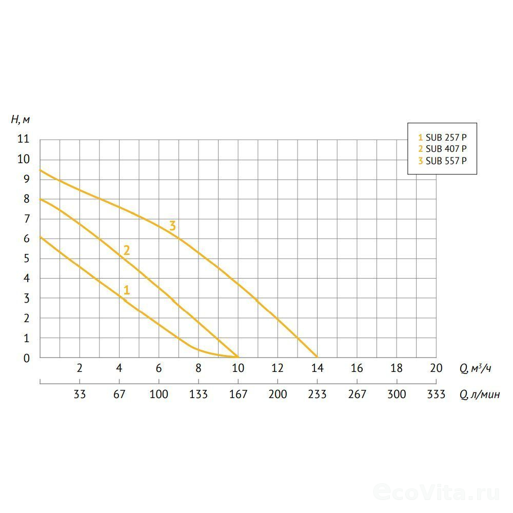 Одноступенчатый дренажный насос с поплавковым выключателем UNIPUMP SUB 257 P предназначен для перекачивания чистой, хлорированной, слегка загрязненной воды с максимальным размером примесей и включений не более 5 мм.