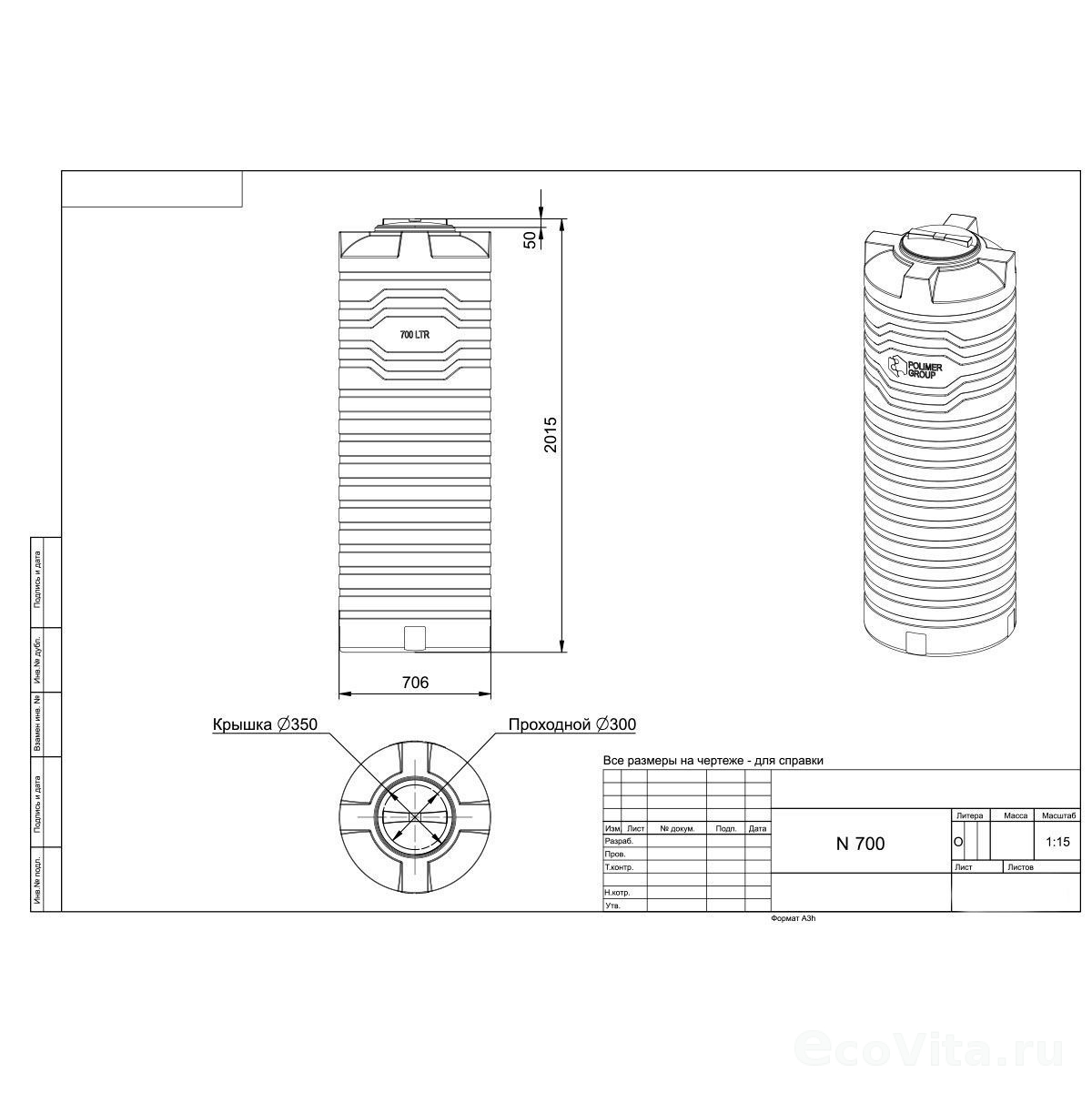Изготовленная из прочного пластика, данная модель подходит для хранения питьевой и технической воды, дизельного топлива и иных технических жидкостей.