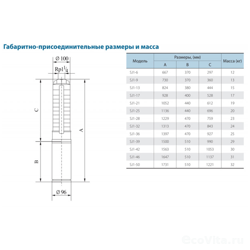 Скважинный центробежный насос CNP SJ1-20 с 4-х дюймовым двигателем из нержавеющей стали.