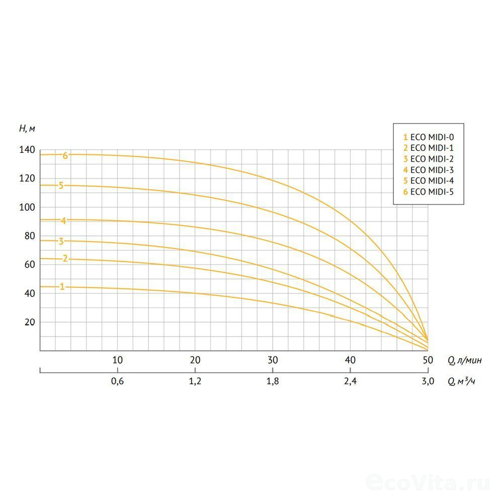 Погружной скважинный насос UNIPUMP ECO MIDI-0 предназначен для подачи чистой холодной воды (без абразивных и волокнистых включений) из скважин диаметром не менее 98 мм (внутренний диаметр обсадной трубы), глубоких колодцев и открытых водоемов.