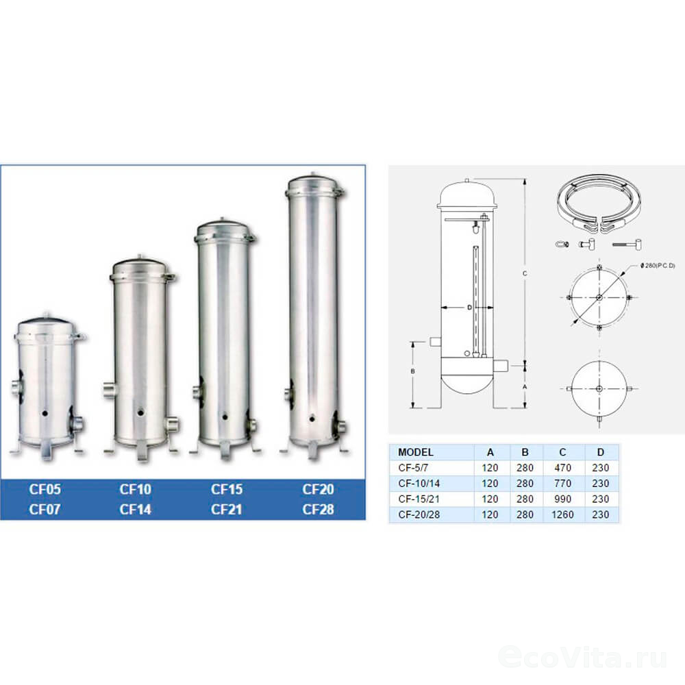 Мультипатронный фильтр на базе корпуса из нержавеющей стали AquaPro CF15-304 используется для очистки воды от механических примесей. Однако, в зависимости от установленного картриджа фильтр удаляет железо, органические вещества, неприятные привкусы и запахи воды.