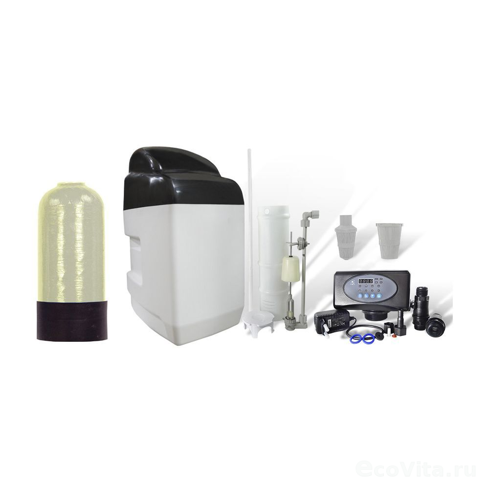 Кабинетный фильтр Ecovita Cabinet SR с автоматическим управлением по расходомеру, предназначен для умягчения и обезжелезивания воды, используемой в хозяйственно-бытовых и питьевых целях. Подходит для очистки воды для коттеджей и частных домов. Клапан управляет операциями сервиса, регенерации, прямой и обратной промывки.