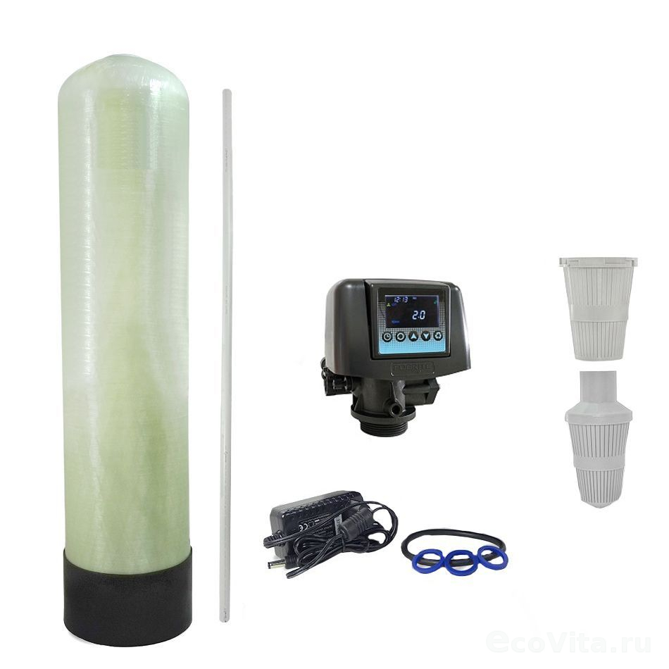 Система фильтрации Ecovita EVF 08 OT с автоматическим управлением состоит из: блока автоматического управления, корпуса фильтра (минерального танка), дренажно-распределительной системы. В зависимости от вида загрузки способна удалять железо, марганец, механические частицы, органические вещества, тяжелые металлы и нитраты и т.д. Идеальный вариант для небольшого дачного дома.