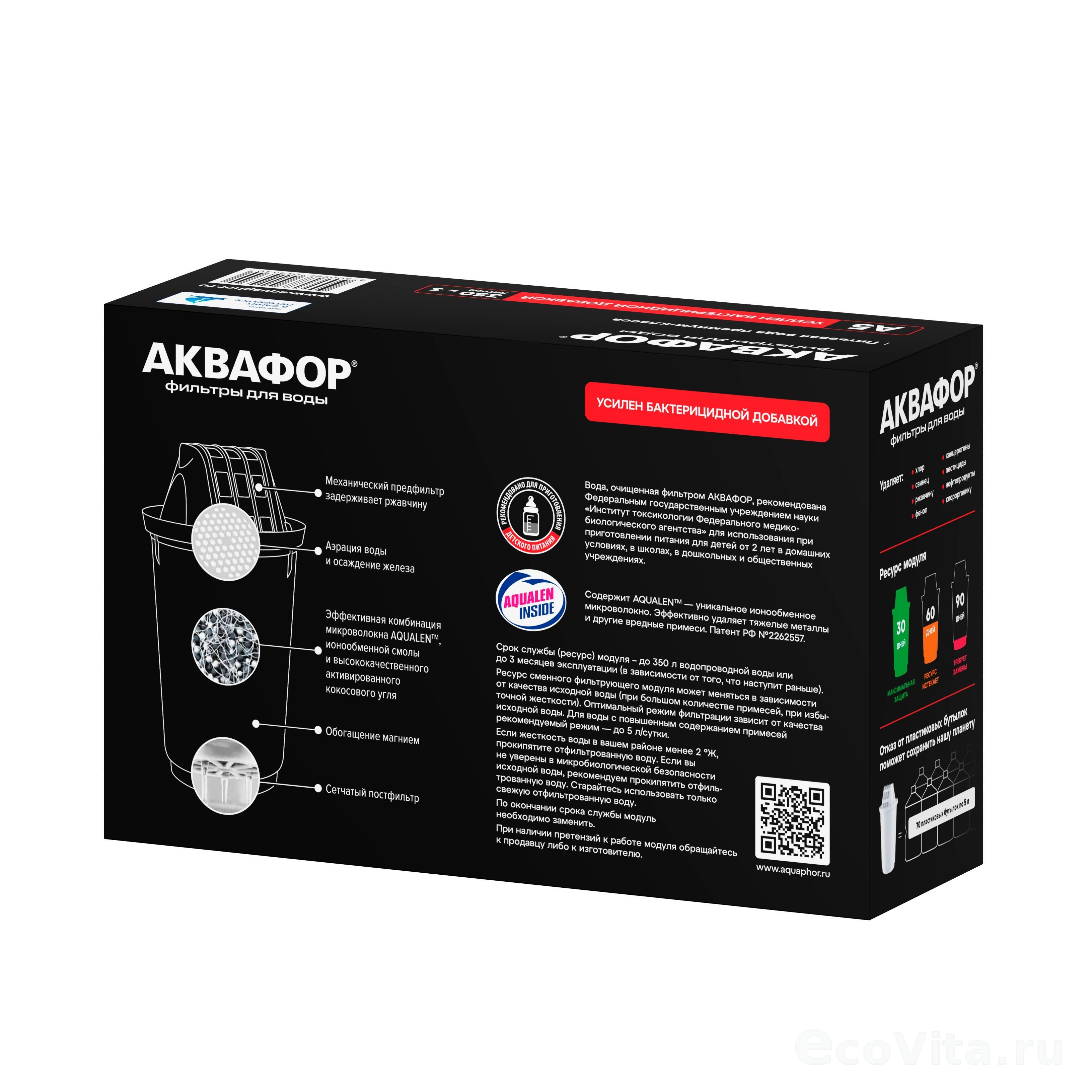 Комплект сменных модулей Аквафор A5 разработан специально для очистки проблемной водопроводной воды. Картридж A5 эффективно очищает воду от широкого спектра загрязнителей: хлора, органических соединений (включая фенолы), тяжелых металлов, ржавчины и остатков медикаментов. Несмотря на сложную исходную среду, модуль стабильно работает долгое время, обеспечивая эффективное удаление хлора и прочих растворенных веществ.