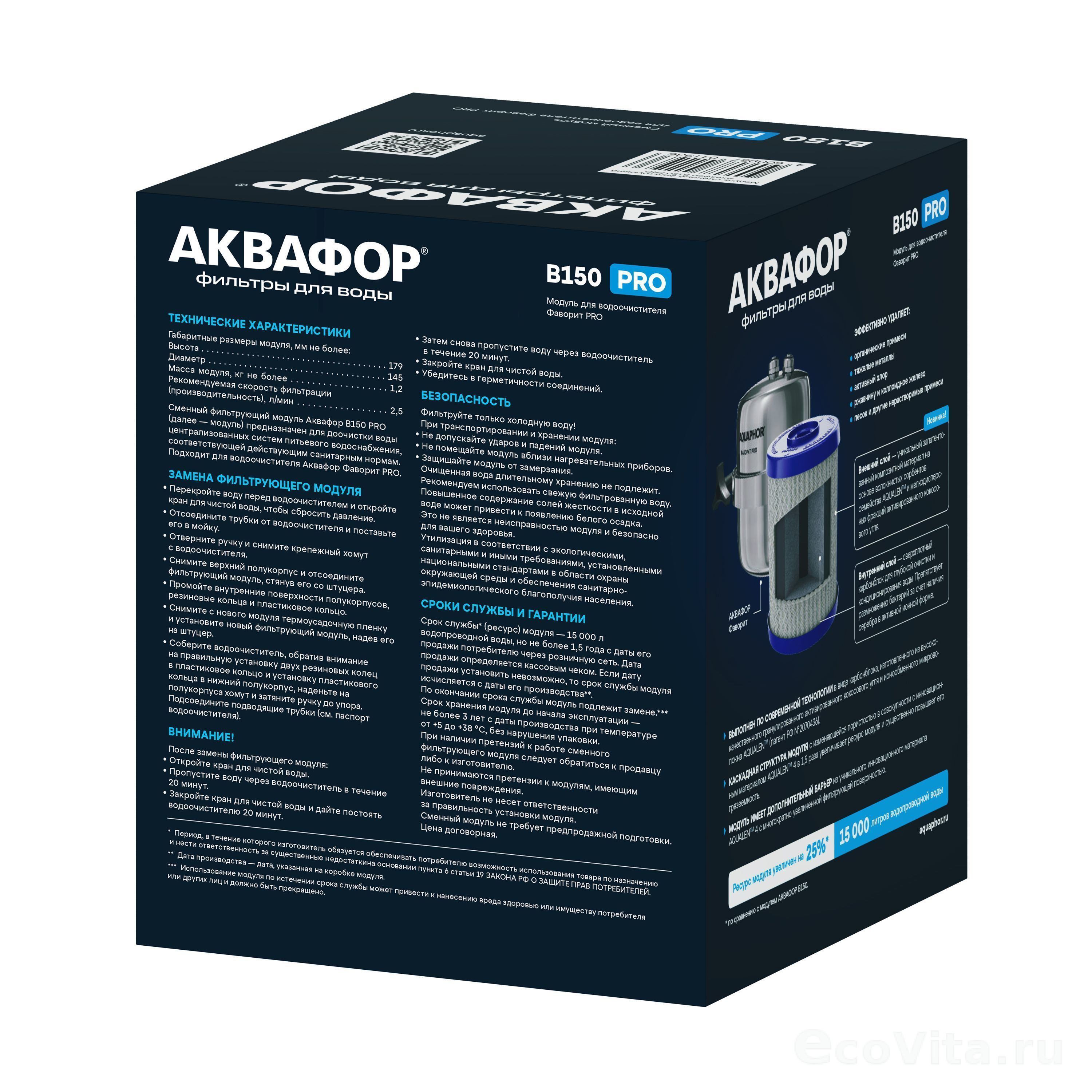 Сменный модуль Аквафор В150 PRO обеспечивает комплексную очистку питьевой воды, разработан специально для водоочистителей серии Фаворит.