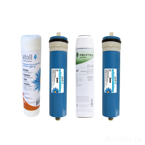 - Две обратноосмотических мембраны Atoll TW30-3012-400, очищающих воду от органических и неорганических соединений, бактерий, вирусов, цист. Мембраны подходят для бытовых и коммерческих фильтров высокой производительности.