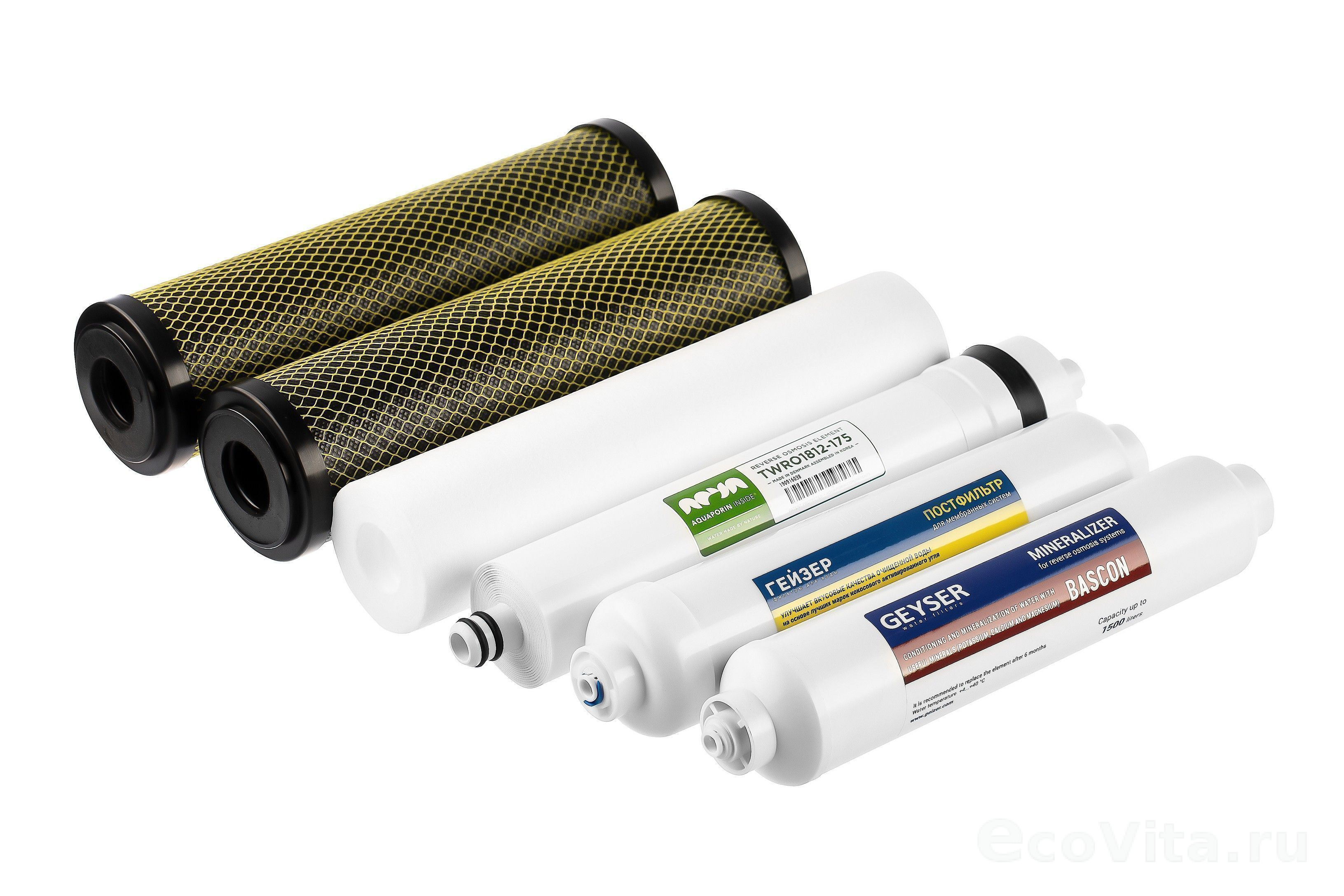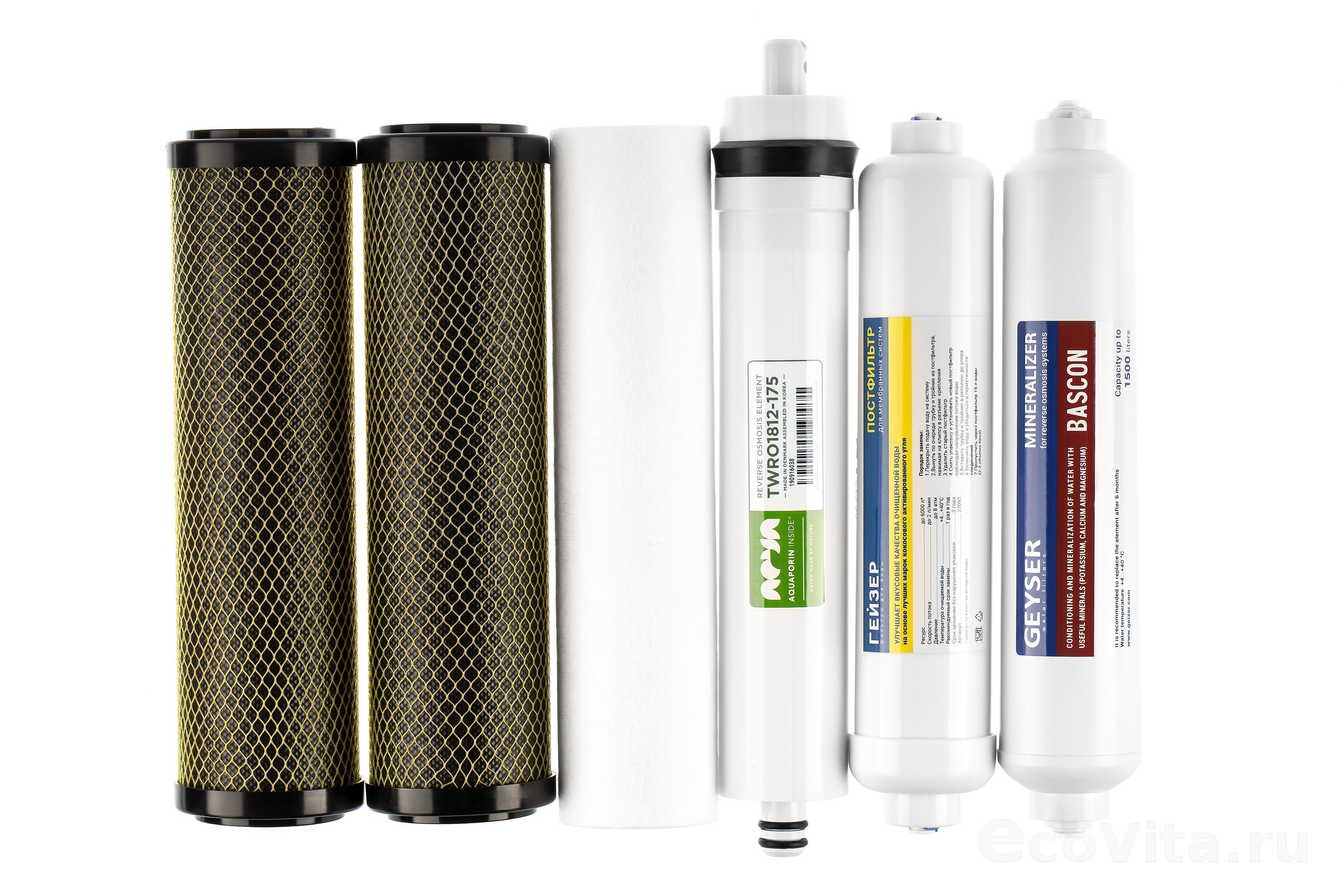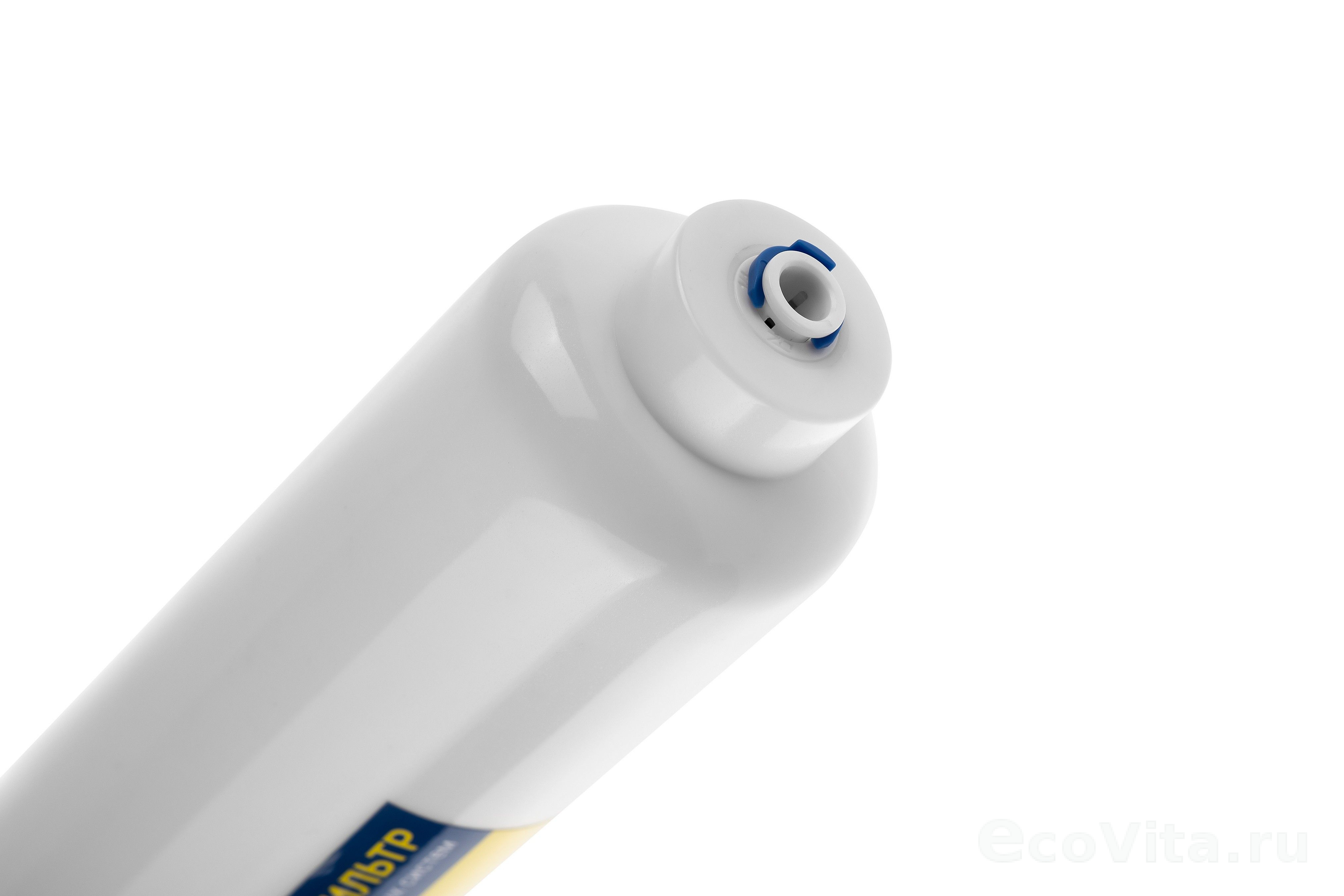 • Угольный постфильтр - картридж сорбционного типа с наполнением из кокосового угля, эффективно устраняет неприятные привкусы и запахи, появление которых возможно из-за застойных явлений в накопительной емкости и присутствия в воде растворенных газов. Ресурс – до 6000 л*;
