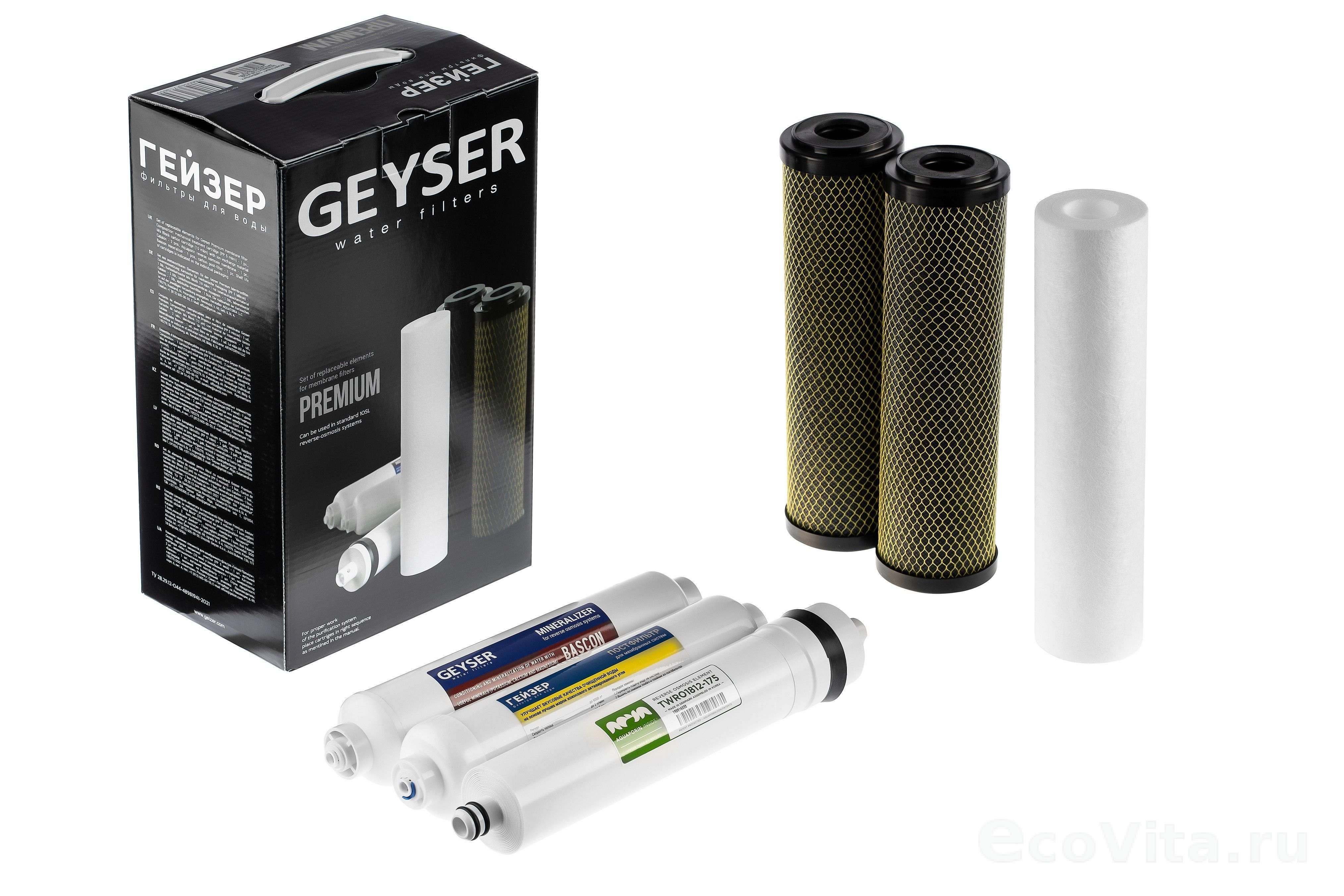 Комплект сменных картриджей мембранного фильтра RO3 предназначен для использования в системах обратного осмоса «Гейзер Премиум» и «Гейзер Премиум-П».
