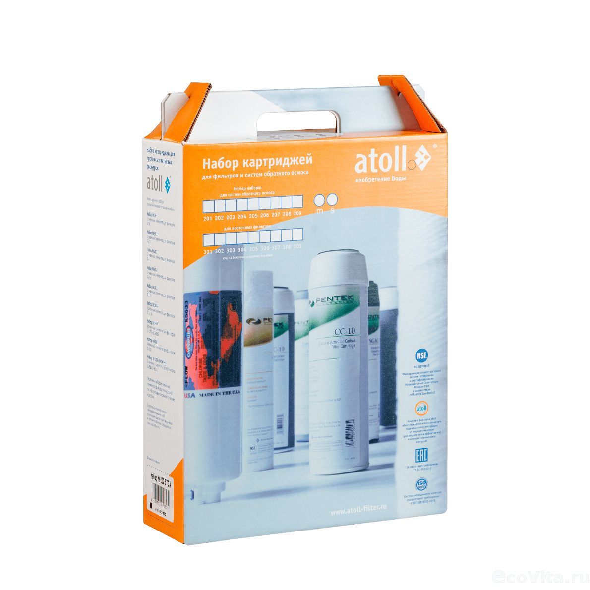 Набор картриджей Atoll №313 для проточного питьевого фильтра Atoll ULTRA состоит из префильтра, ультрафильтрационного картриджа и постфильтра.