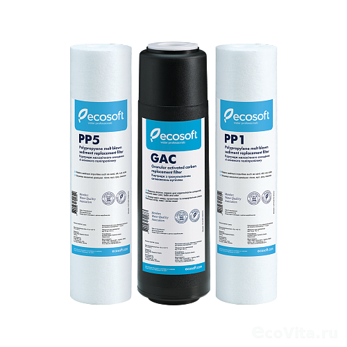 Комплект картриджей Ecosoft 1-2-3 предназначен для фильтров обратного осмоса. В состав комплекта входят три картриджа предварительной очистки.