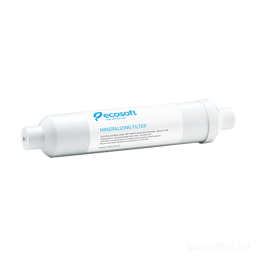 Минерализатор Ecosoft содержит смесь кальцита и гранулированного активованного угля из скорлупы кокосовых орехов. Насыщает воду минералами, нормализует рН воды, корректирует вкус и запах очищенной воды.