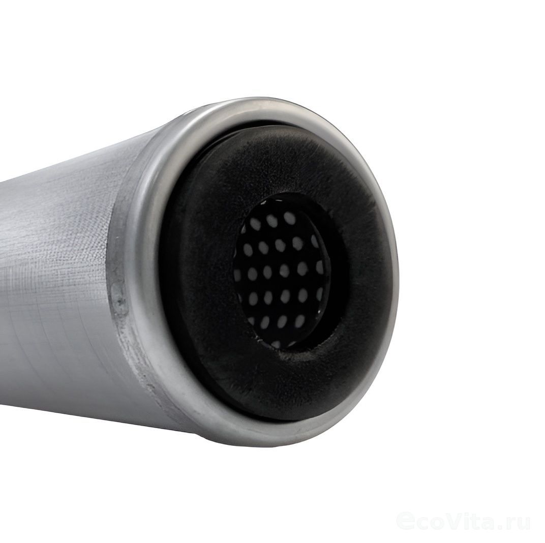 Картридж изготовлен из нержавеющей стали и является многоразовым за счет возможности промывки.