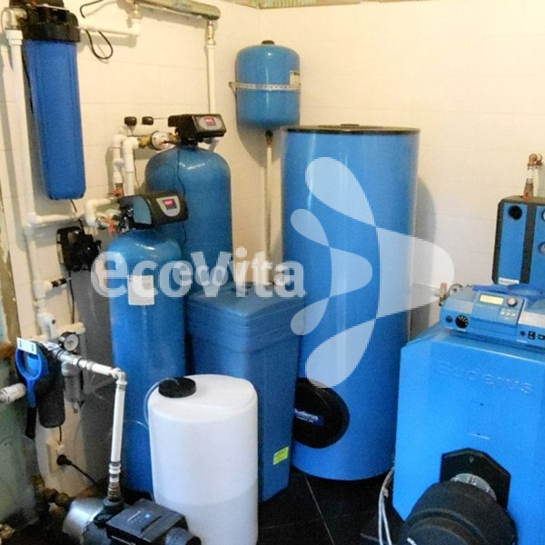 На входе воды с помощью насоса пропорционального дозирования осуществляется введение окислителя, с целью перевода растворенного железа и органики в не растворенную форму. Затем все взвешенные частицы удаляются на первом фильтре с загрузкой из природного алюмосиликата. Второй напорный фильтр с загрузкой из смеси ионообменных удаляет органические вещества, соли жесткости и марганец. Корпус стандарта 20" BB с картриджем из активированного угля производит финишную очистку и предотвращает вылет загрузки из напорных фильтров в систему водоснабжения. На выходе установлен ультрафиолетовый обеззараживатель, которые защищает от всех вирусов и бактерий на 100%.