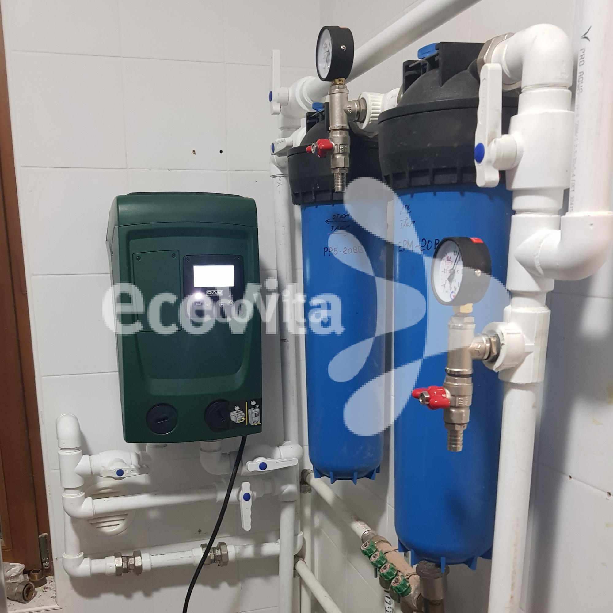 Монтажно-Сервисная служба компании Эковита по запросу владельца коттеджа в п. Токсово установила насосную станцию DAB E.Sybox для водоснабжения загородного дома. Так же были установлены несколько магистральных фильтров для очистки воды.