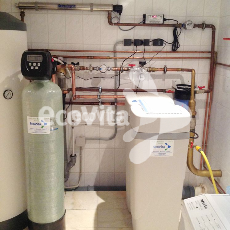 На выходе из системы установлен фильтр с полипропиленовым картриджем 20" BB, который препятствует выносу частиц загрузки из напорных фильтров.