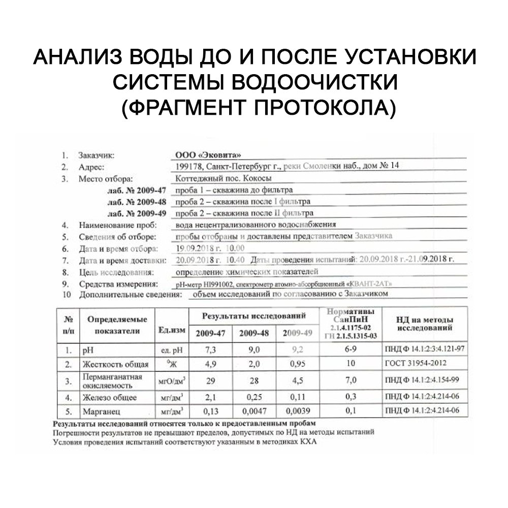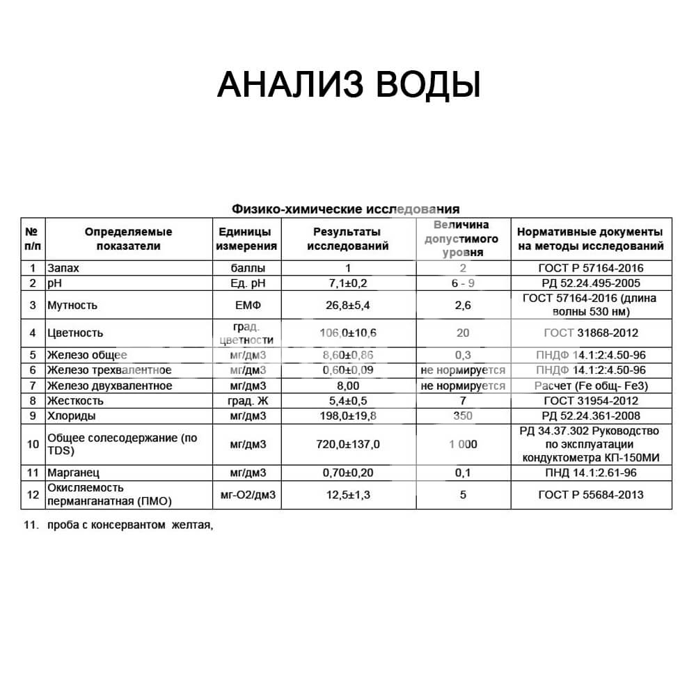 В воде обнаружено превышение нормативов по железу, марганцу, мутности, цветности, ПМО.