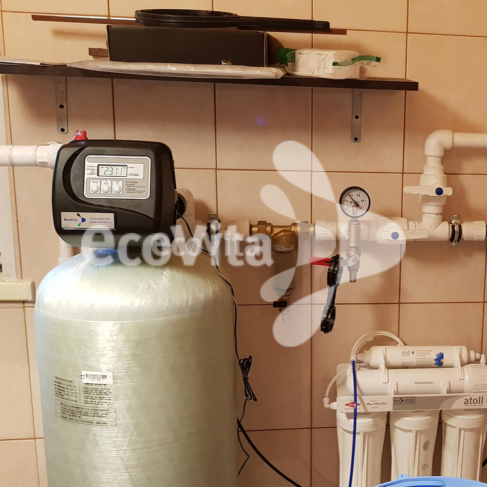 - Засыпной фильтр Ecovita EVF 13 CT с активированным углем. Удаляет из воды растворенное и не растворенное железо и снижает цветность и мутность.
