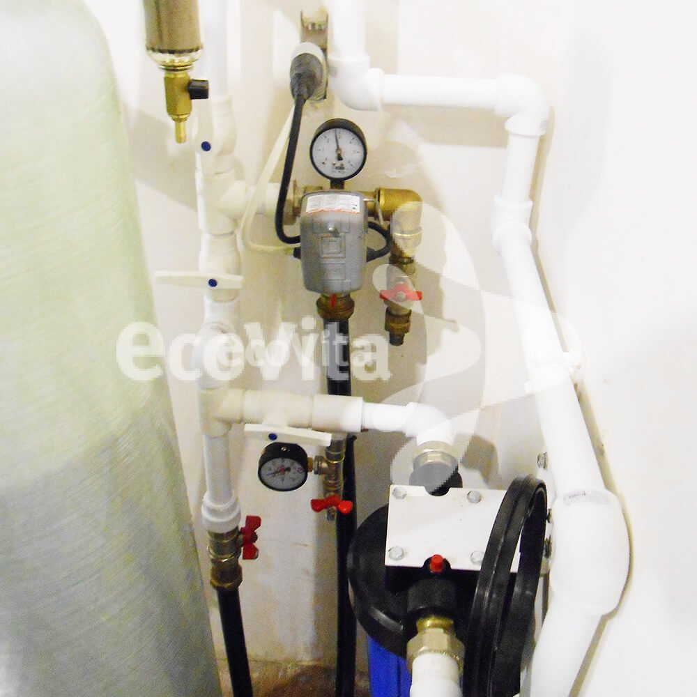 2. Засыпной умягчитель Ecovita EVS 12 используется для очистки воды от растворенного железа и солей жесткости