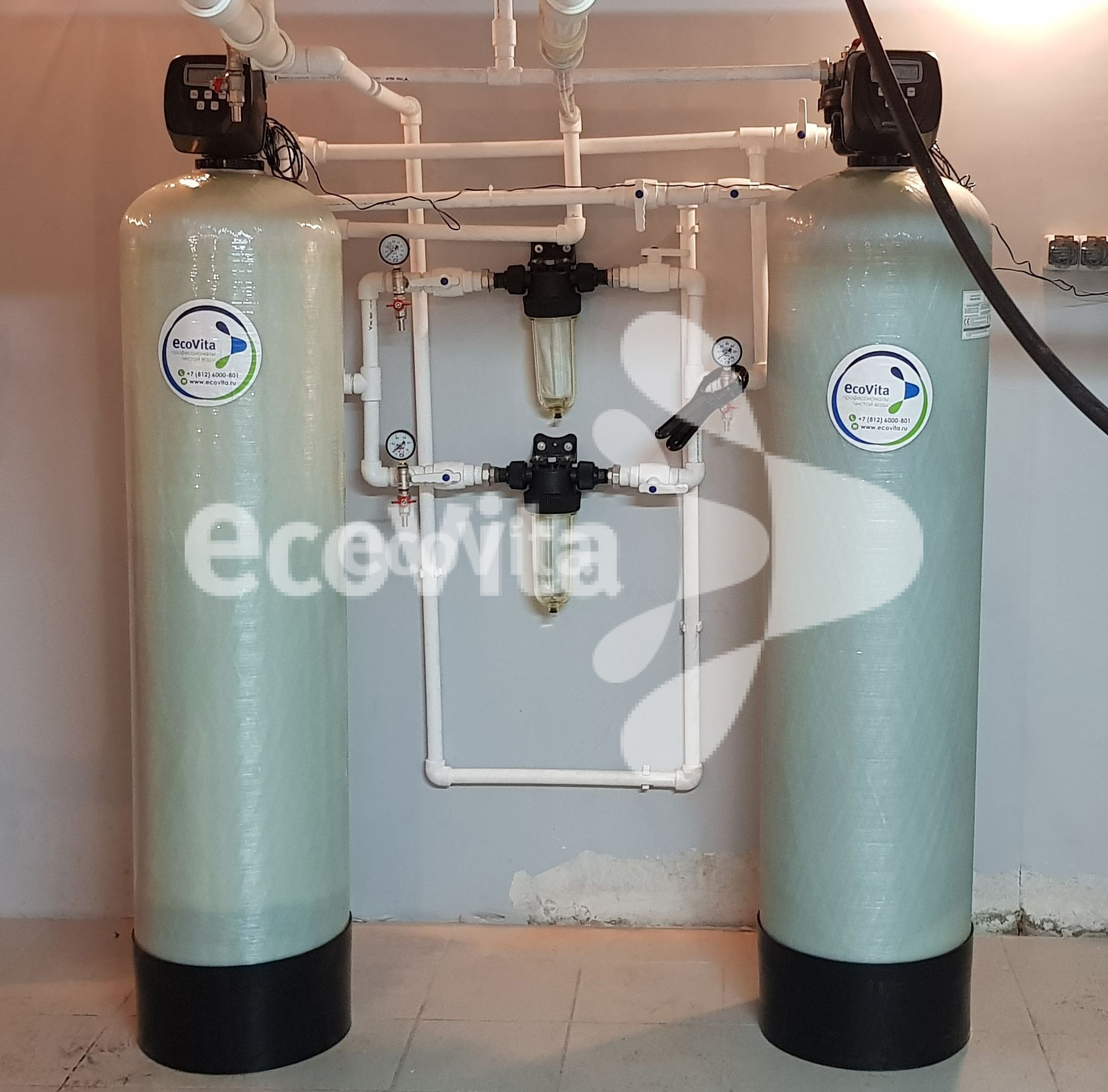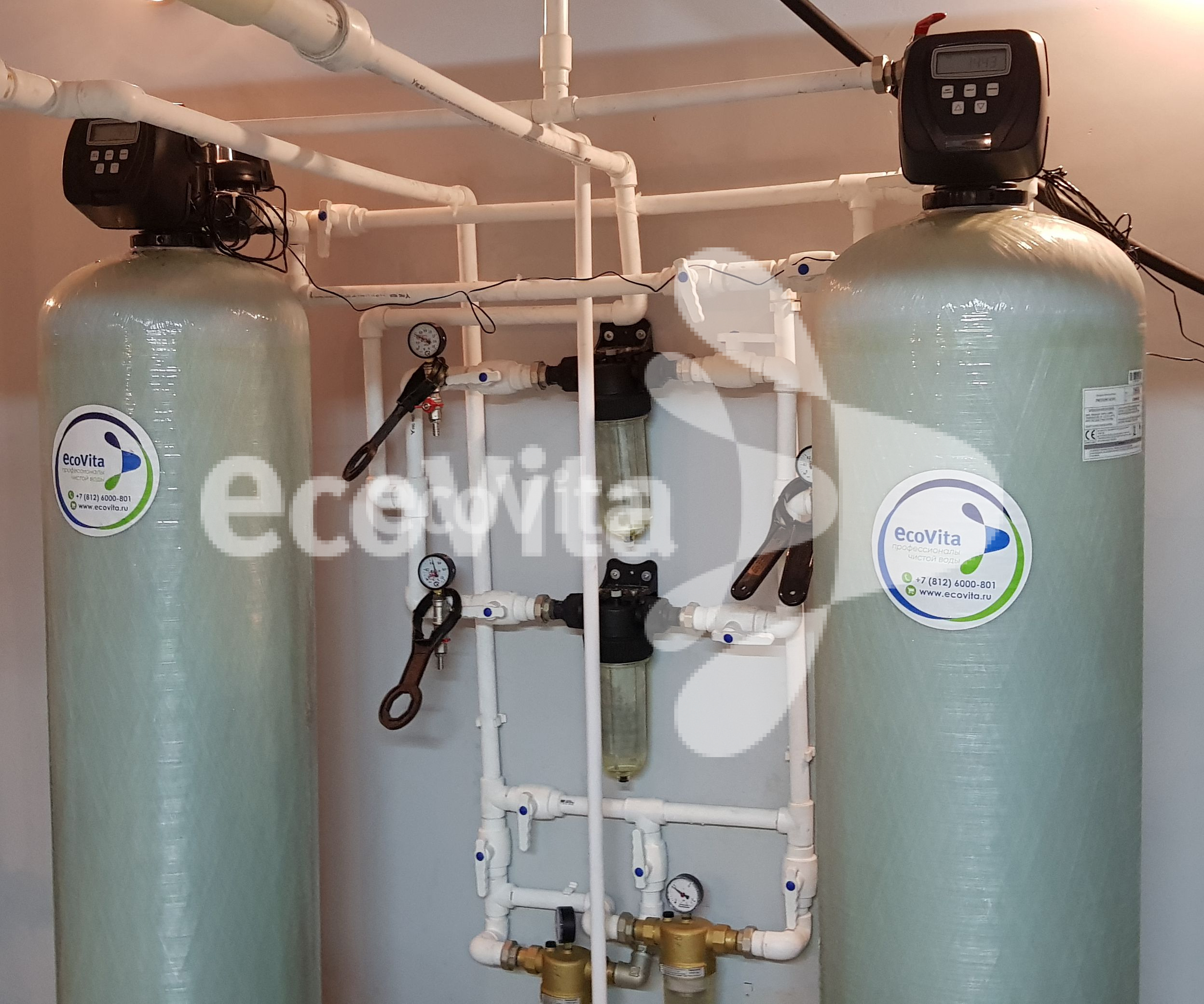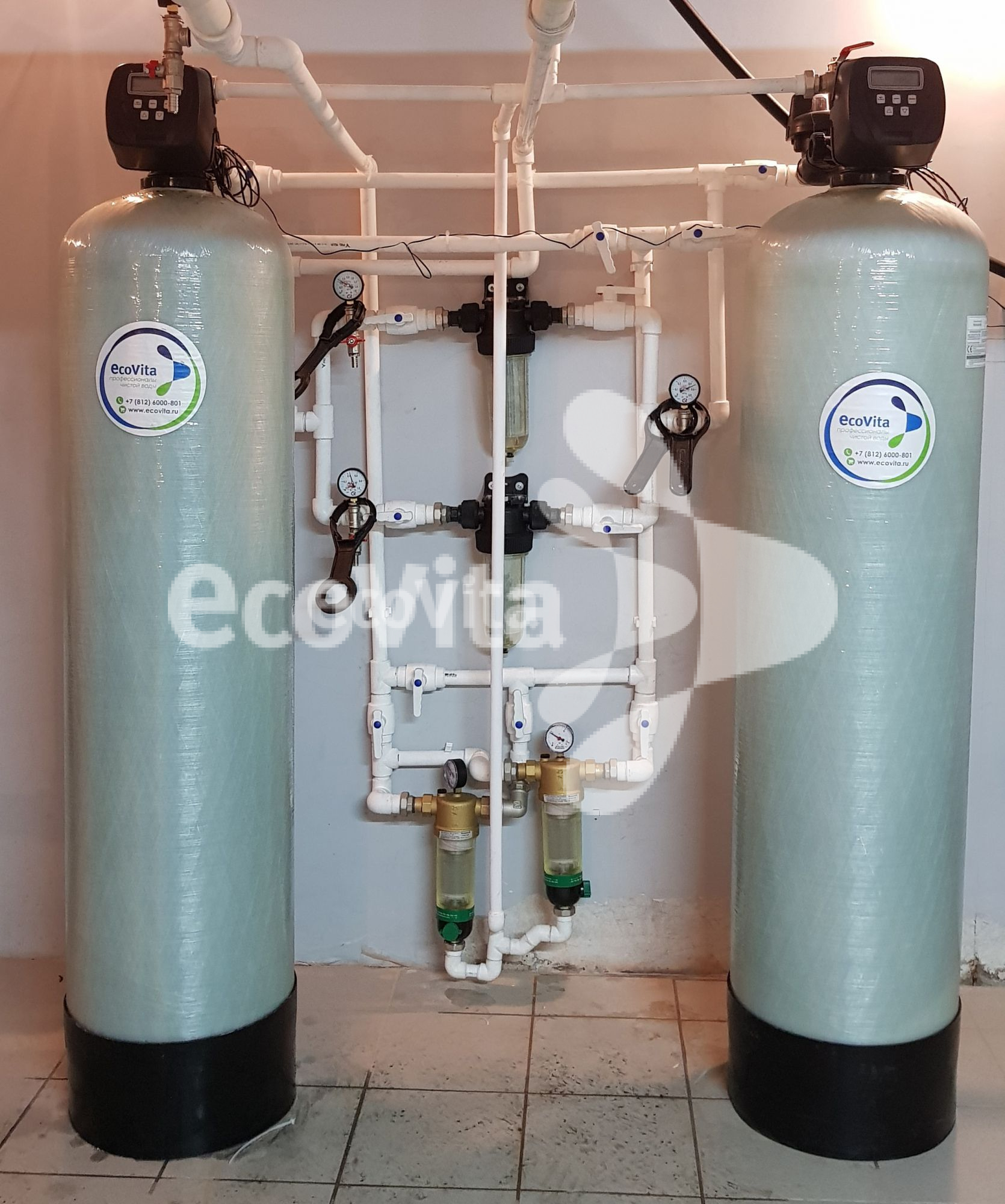Монтаж системы очистки в многоквартирном доме в г. Санкт-Петербург. Заказчику требовалась очистка воды из системы холодного водоснабжения с превышениями показателей «железо» и «мутность» до питьевого уровня.